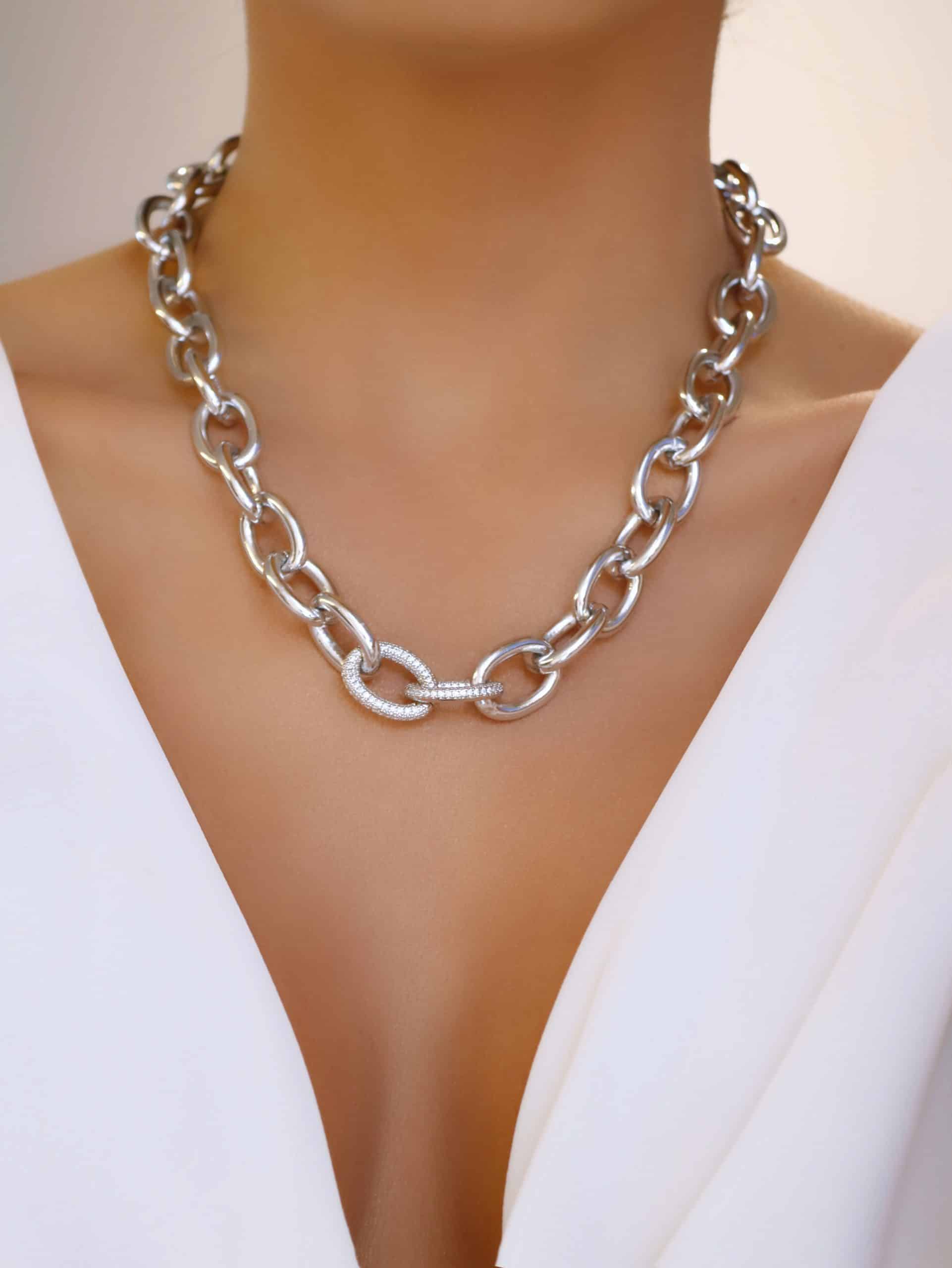 GARGANTILHA ZIRCONIA ELOS LISOS E COM DOIS CRAVEJADO 40CM 14.7 MM