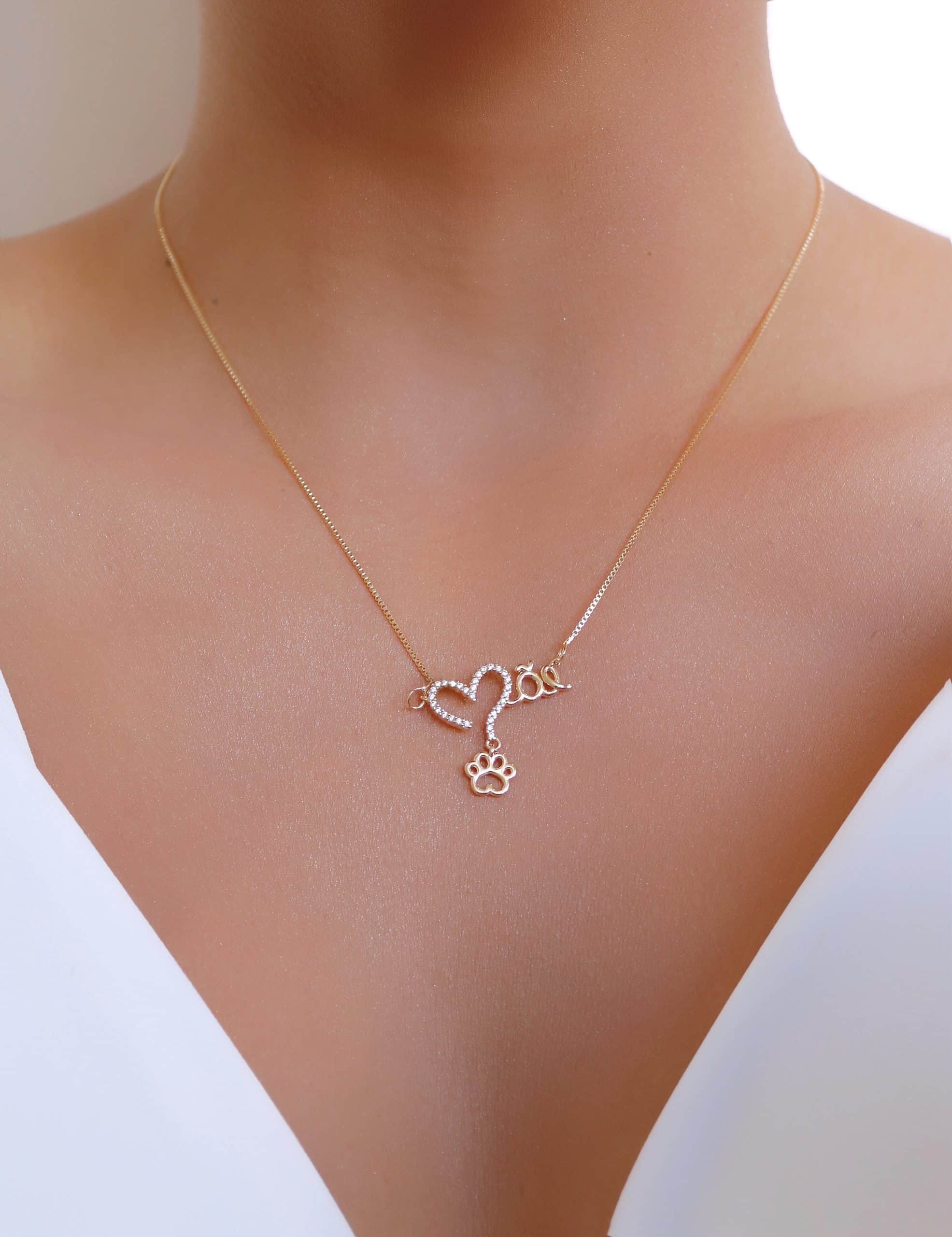 GARGANTILHA ZIRCONIA ESCRITO MAE COM A PATA PENDURADA 45CM