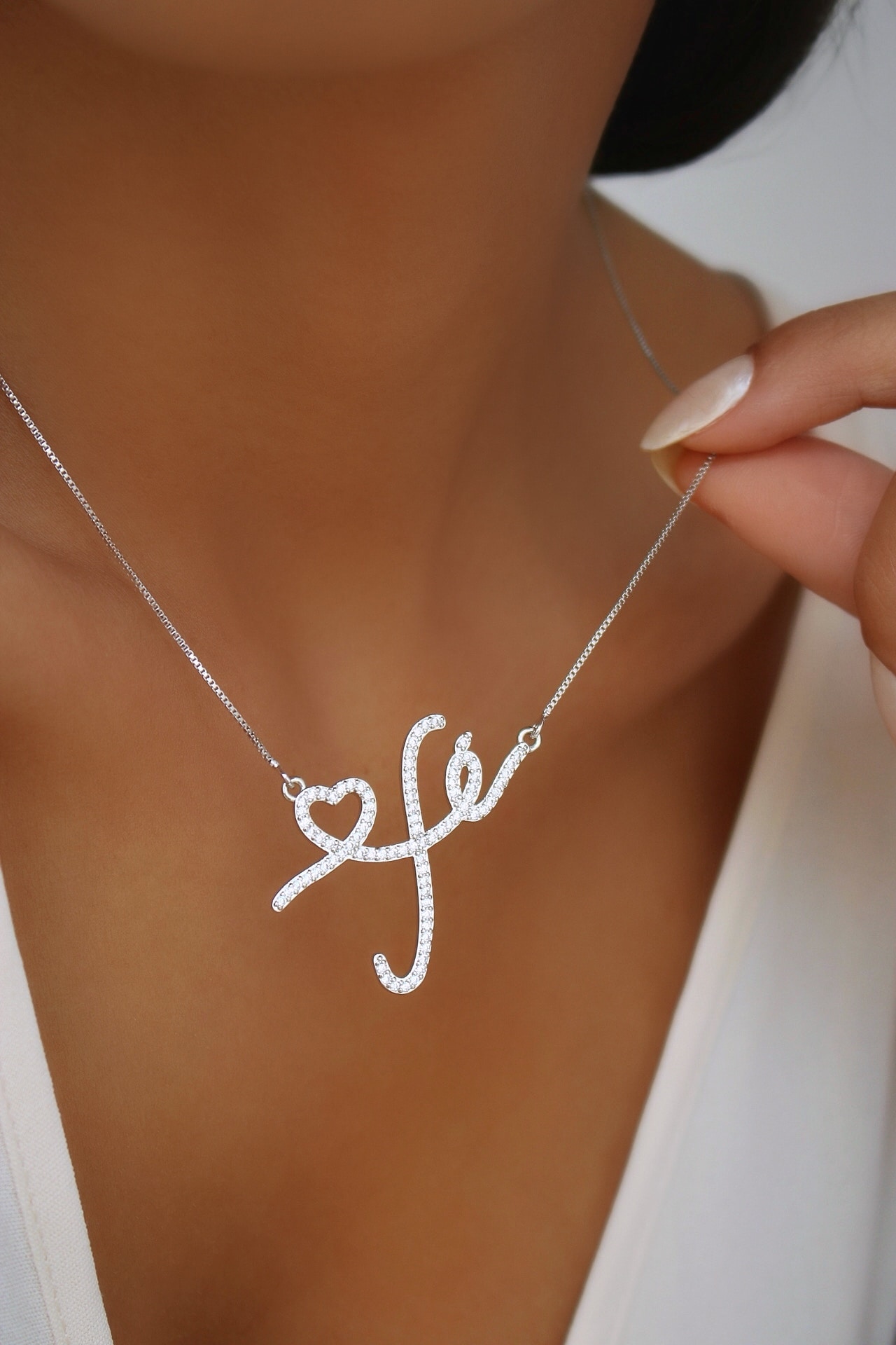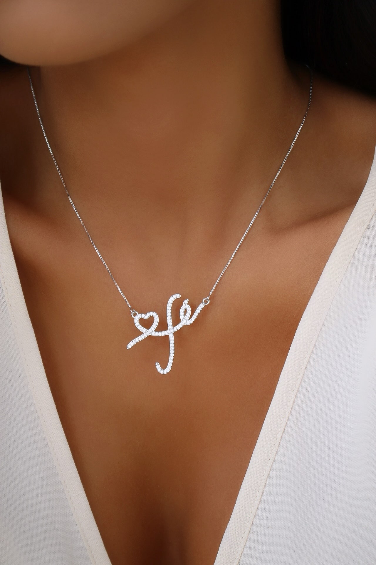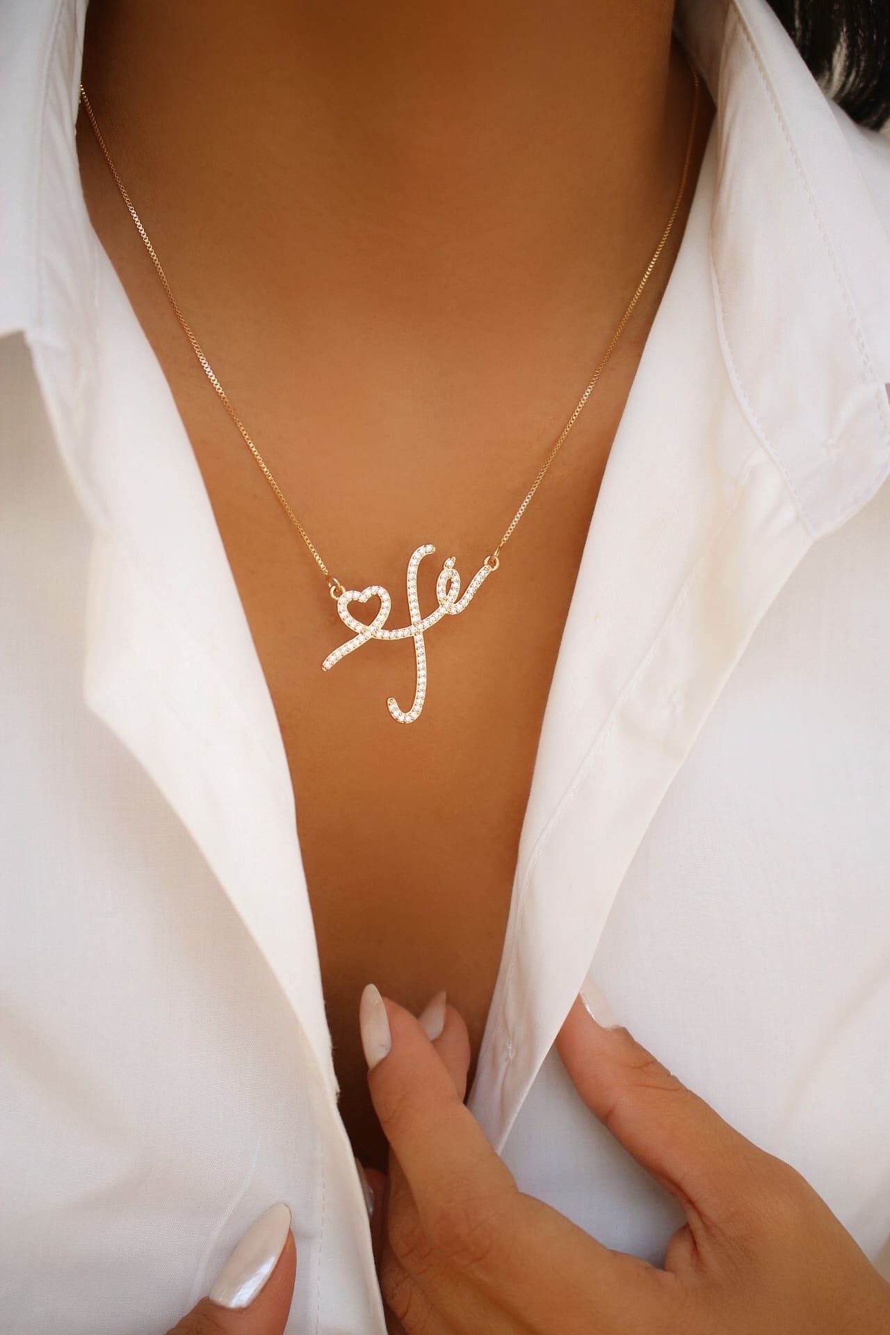 GARGANTILHA ZIRCONIA FE E CORACAO 40CM