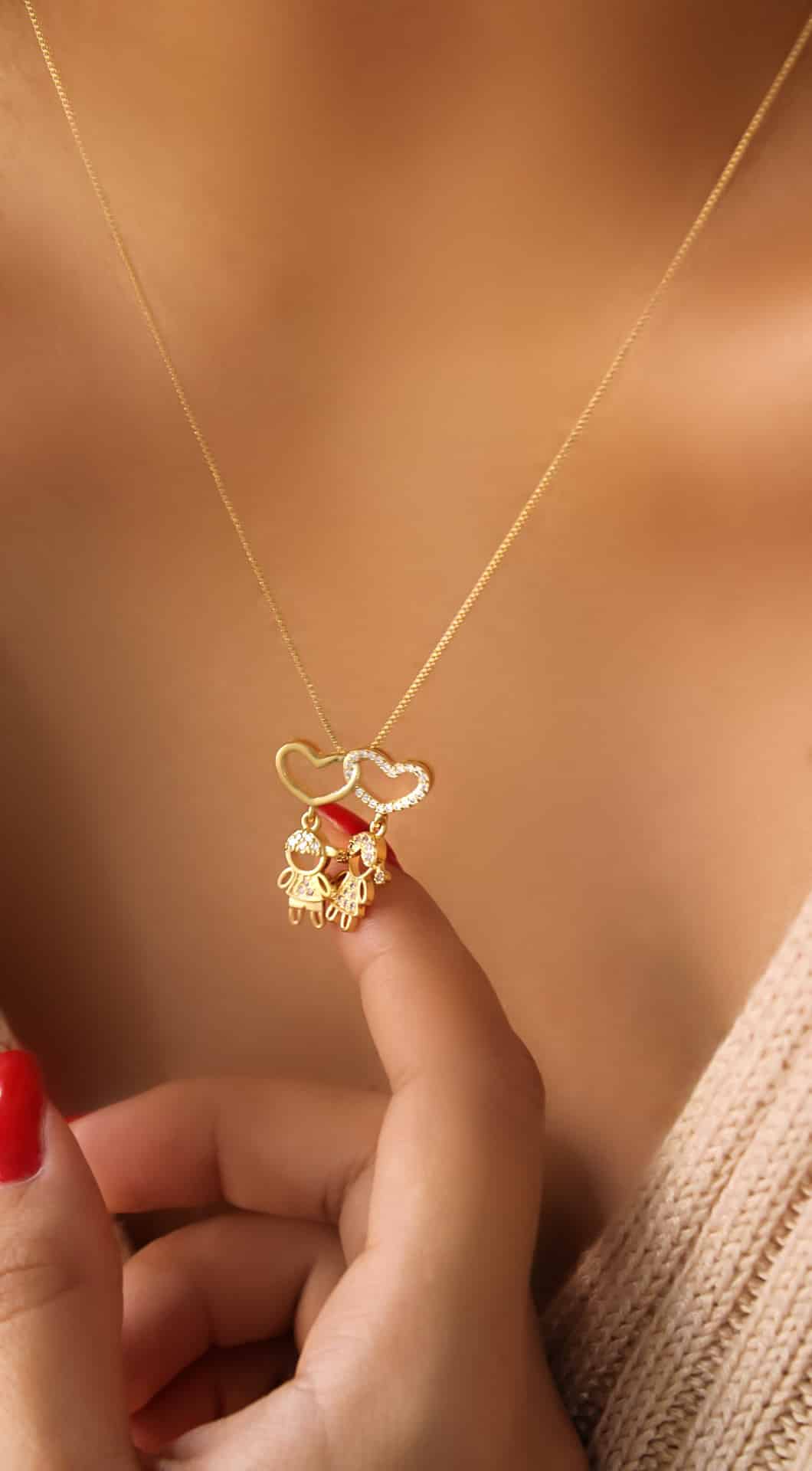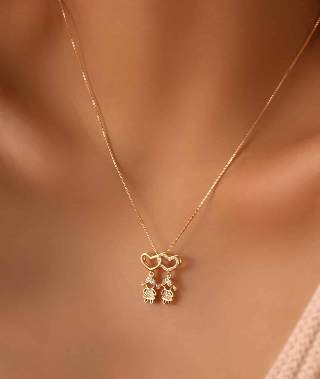 GARGANTILHA ZIRCONIA MENINO E MENINA COM CORACAO VAZADO 01
