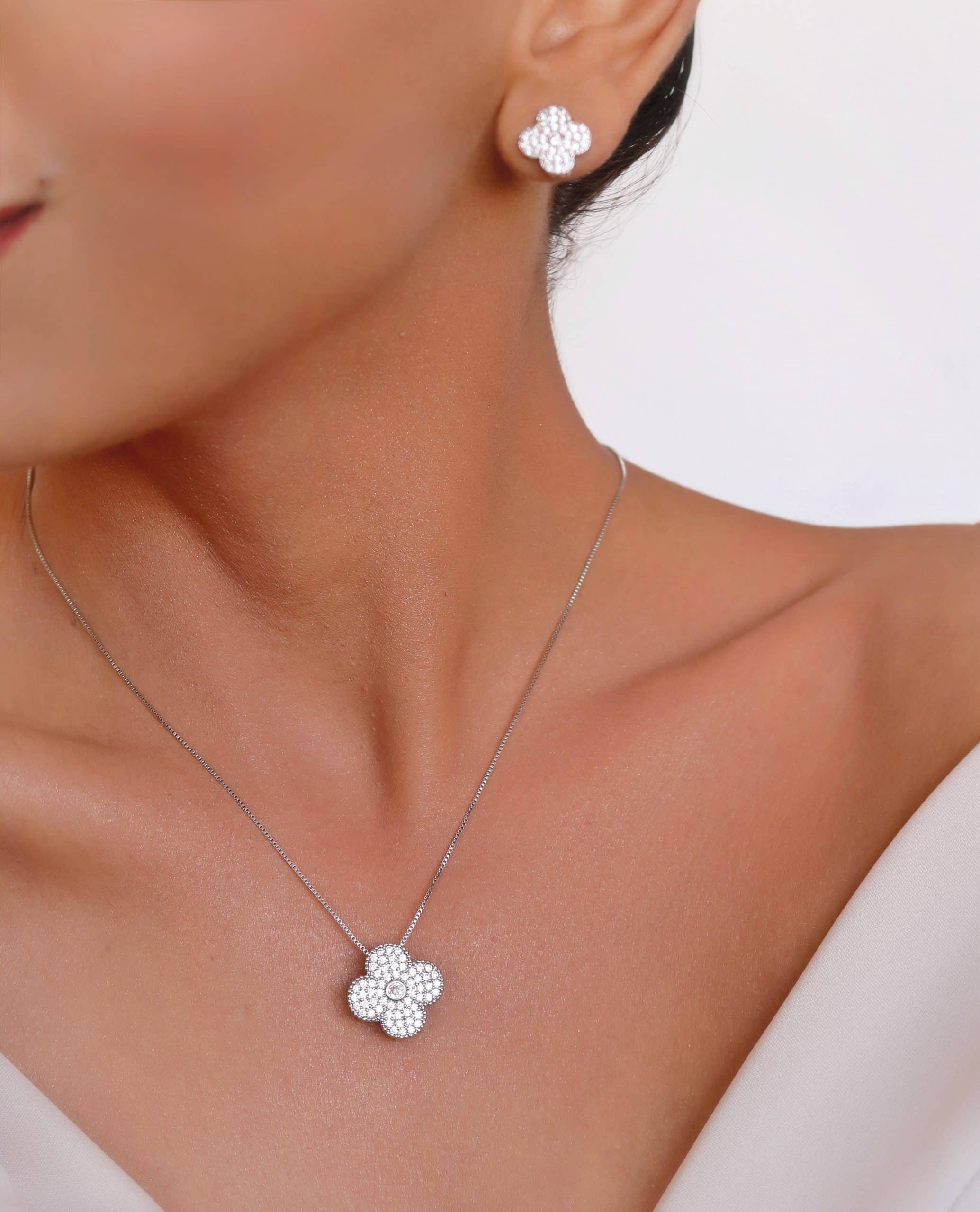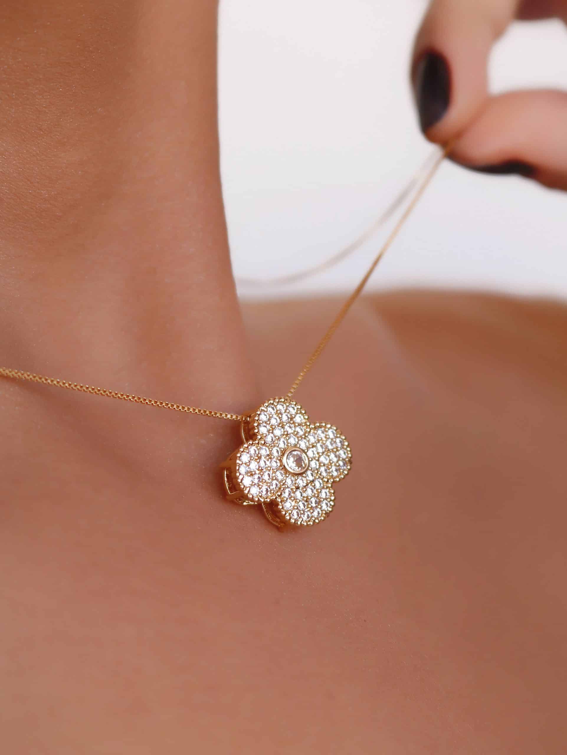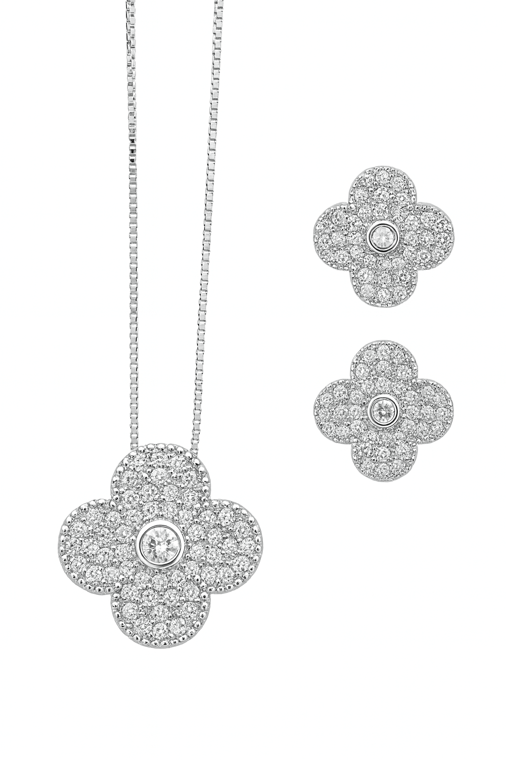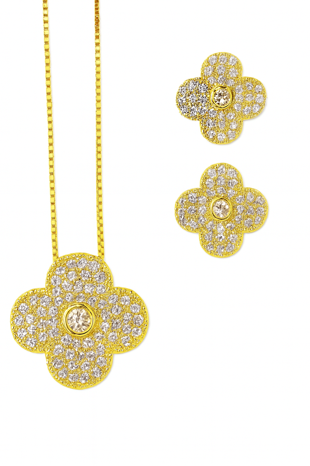 CONJUNTO ZIRCONIA COM UMA FLOR CRAVEJADA E A OUTRA COM RESINA CORES 40CM