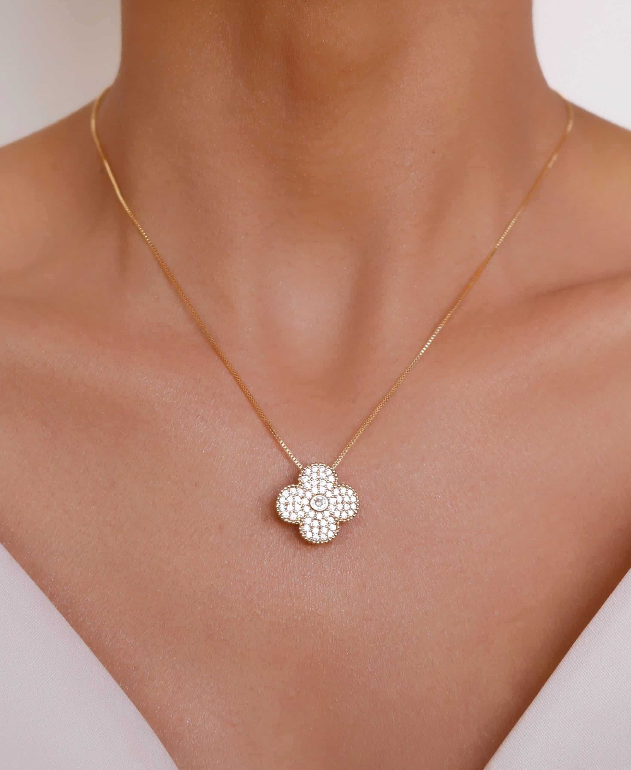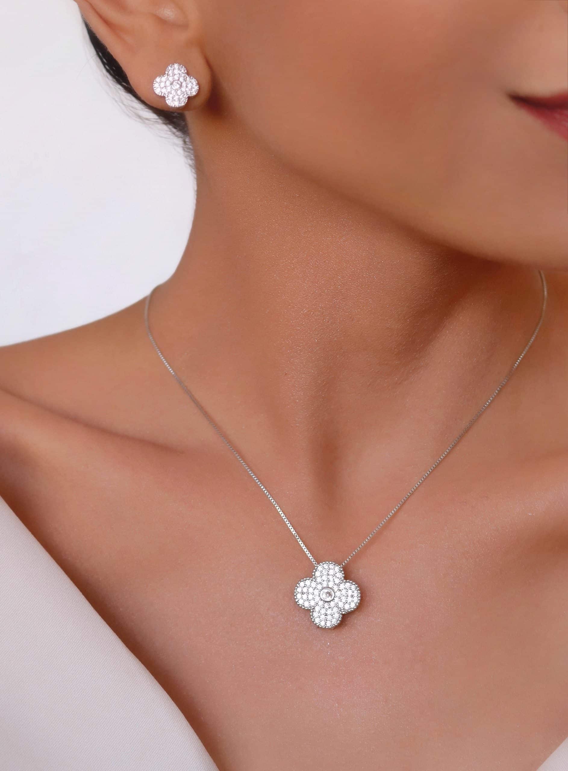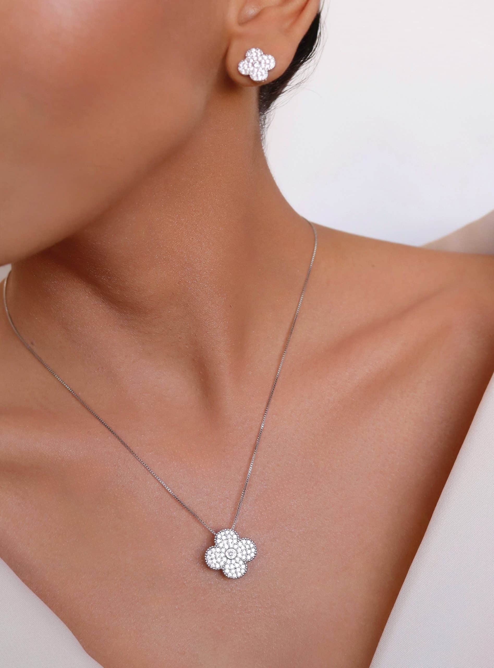 CONJUNTO ZIRCONIA COM UMA FLOR CRAVEJADA E A OUTRA COM RESINA CORES 40CM