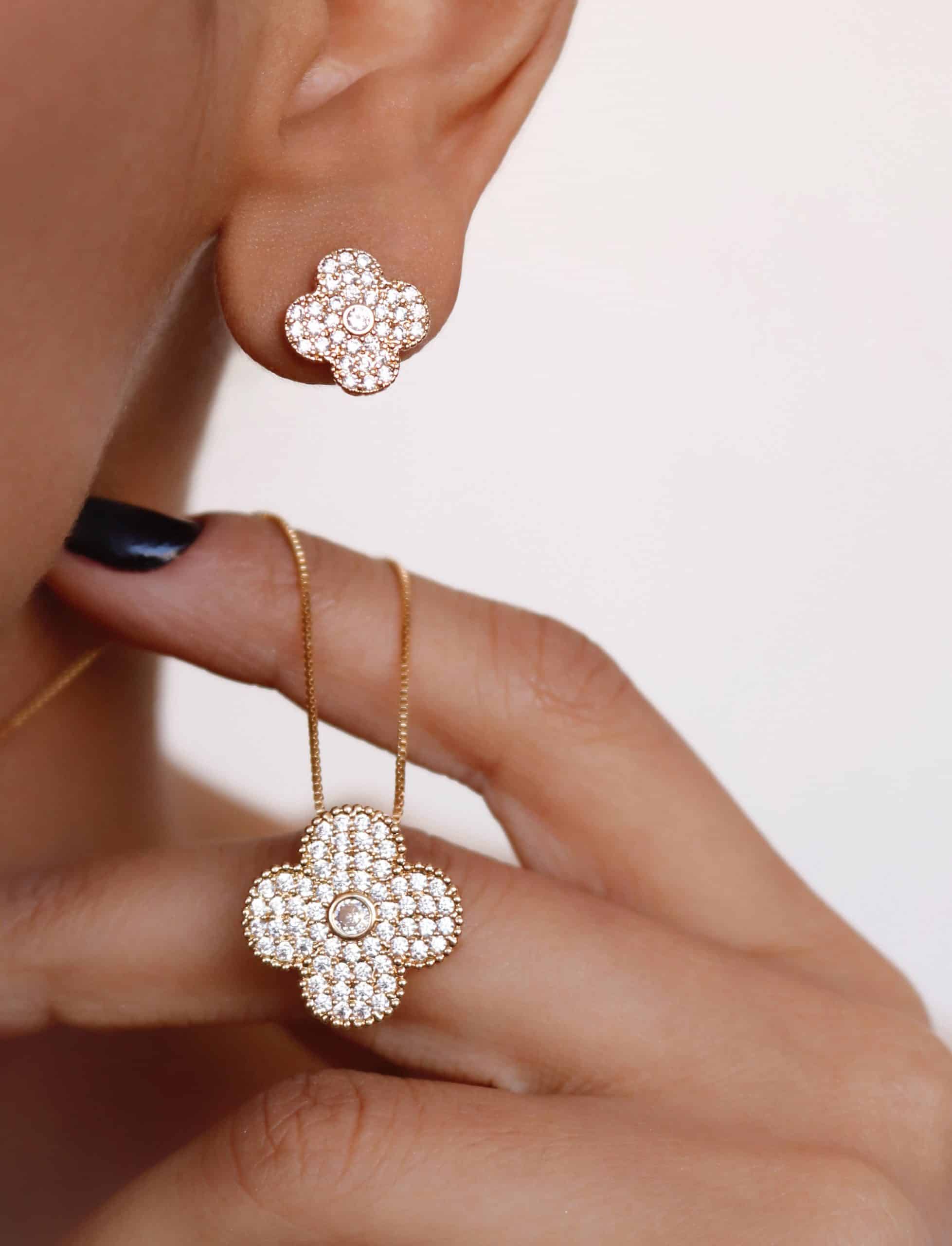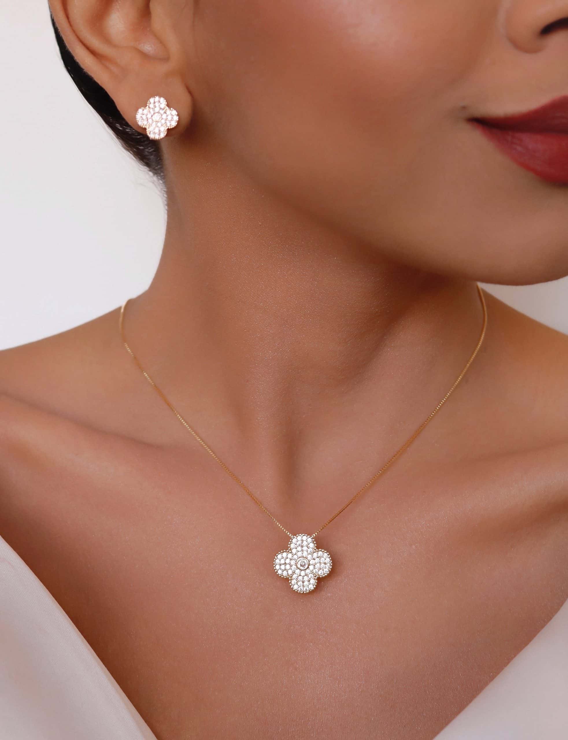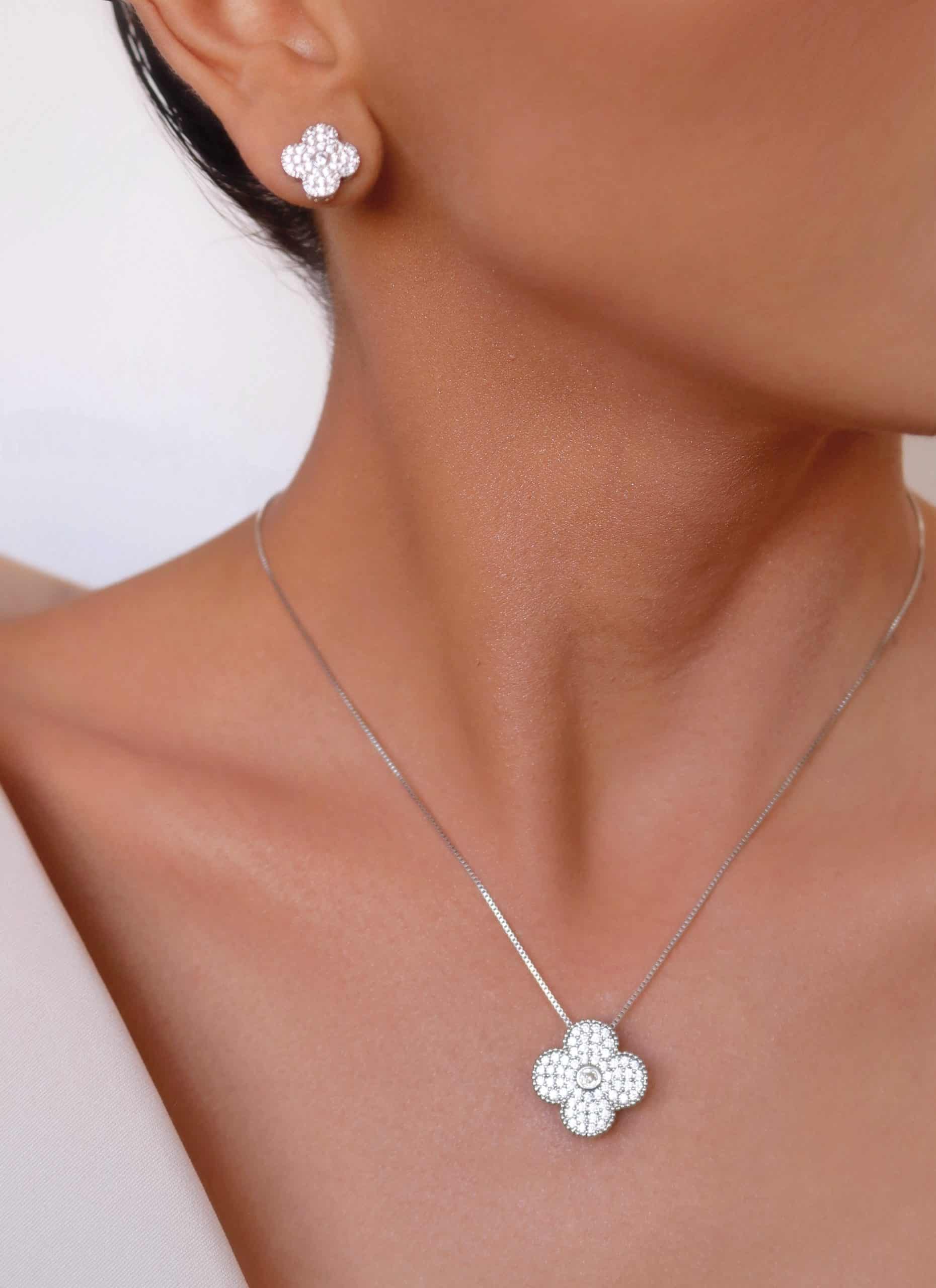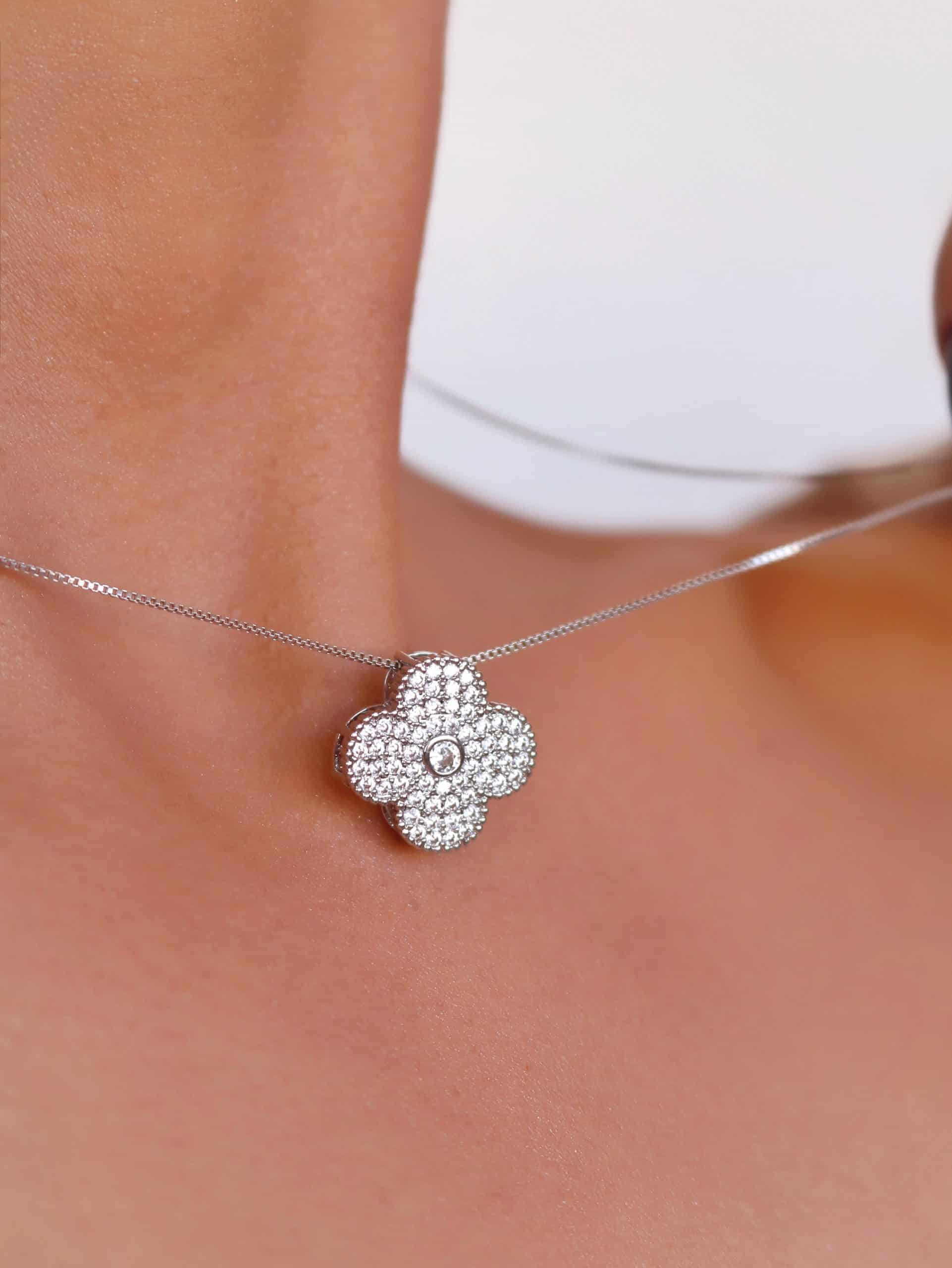 CONJUNTO ZIRCONIA COM UMA FLOR CRAVEJADA E A OUTRA COM RESINA CORES 40CM