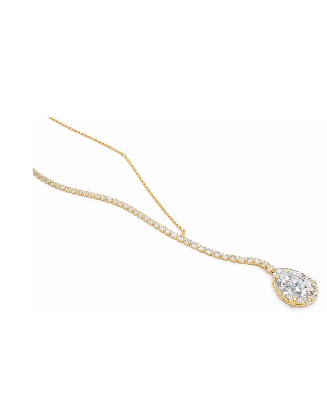 GARGANTILHA ZIRCONIA GRAVATA METADE RIVIERA E METADE VENEZIANA COM GOTA PENDURADA 40CM