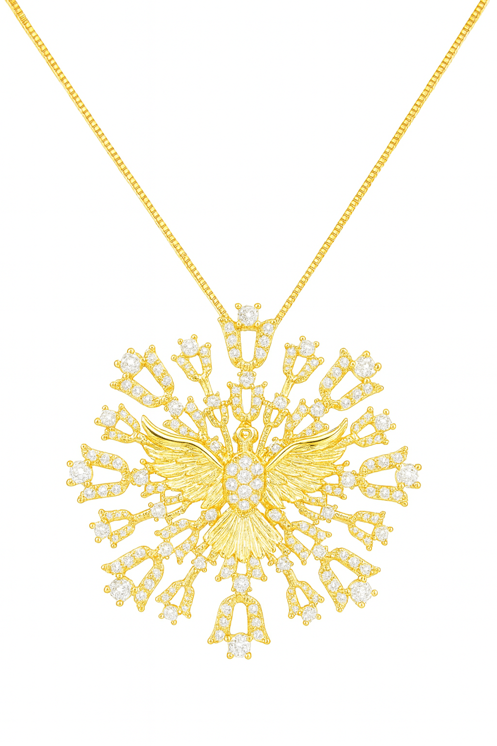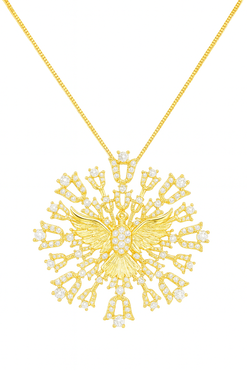 GARGANTILHA ZIRCONIA MANDALA GRANDE COM ESPIRITO SANTO NO MEIO