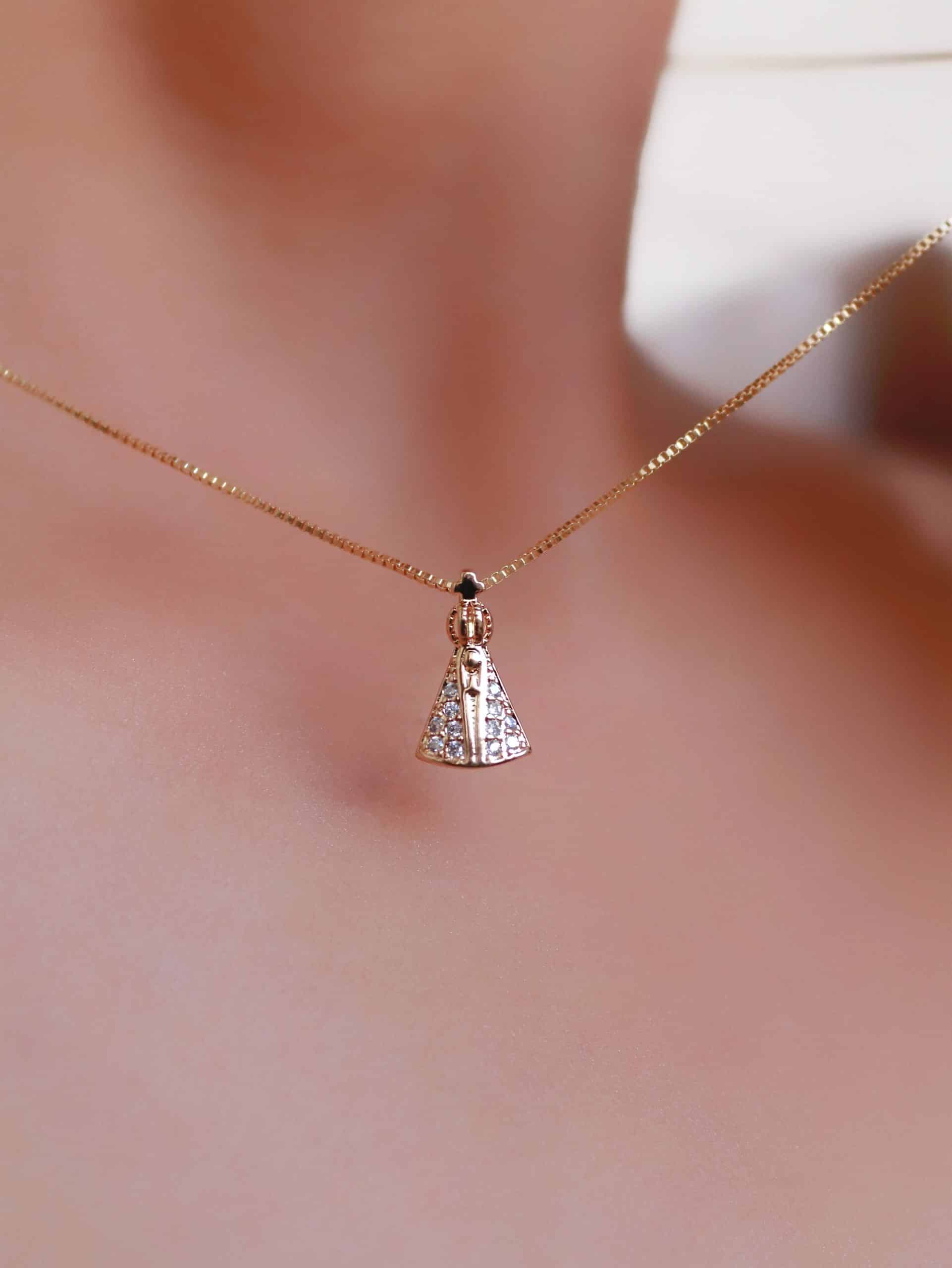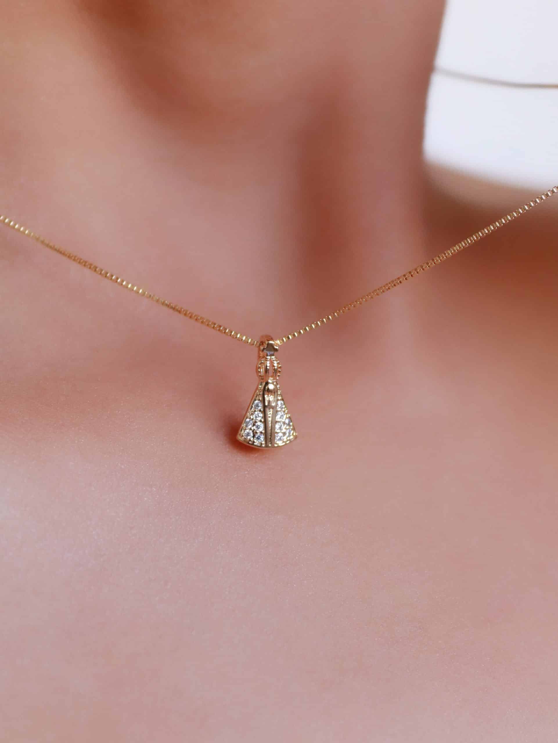 GARGANTILHA ZIRCONIA NOSSA SENHORA PEQUENA DOZE ZIRCONIAS 45CM