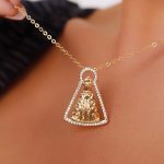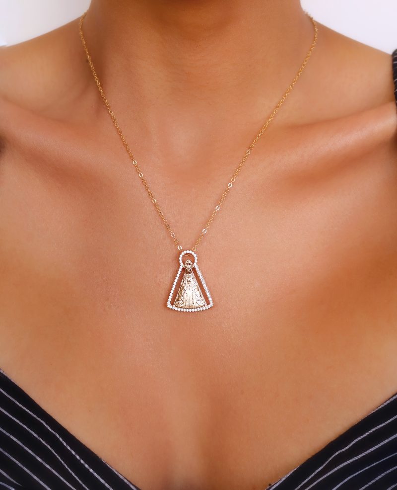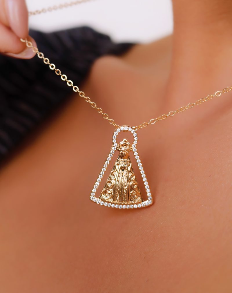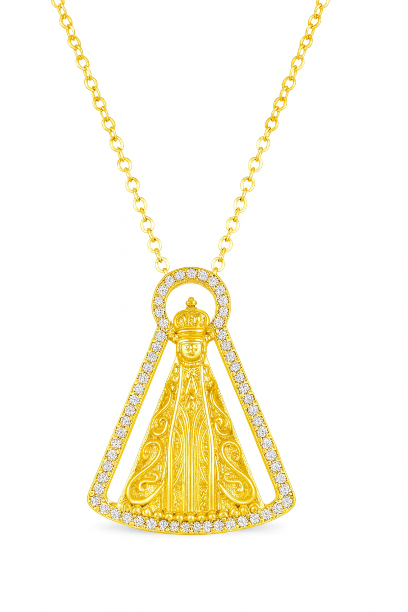 GARGANTILHA ZIRCONIA NOSSA SENHORA VAZADA COM ELOS PORTUGUES PEQUENO 27.4 MM 45CM