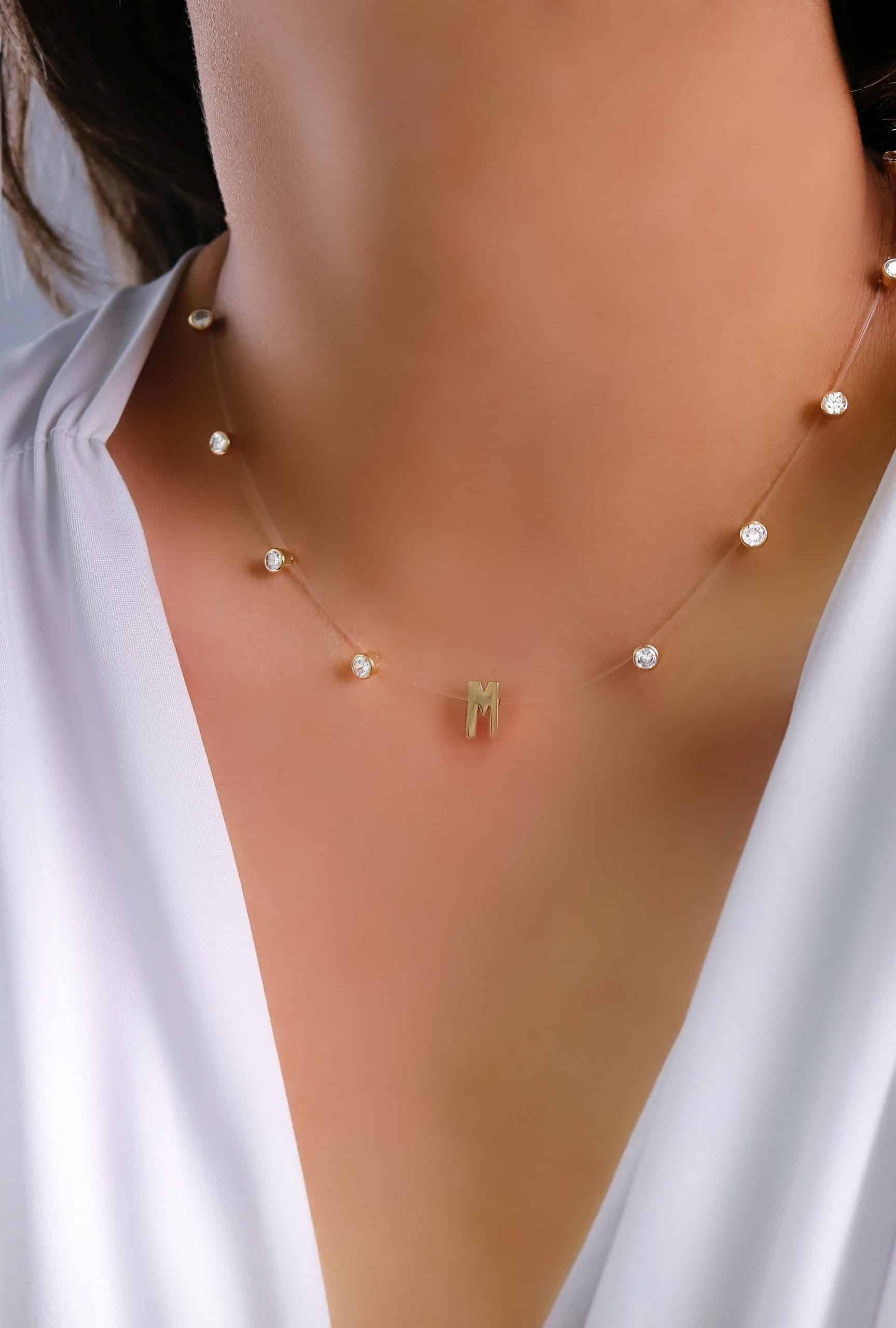 GARGANTILHA ZIRCONIA NYLON DEZ PONTOS DE LUZ E LETRA 40CM (Ródio branco)