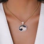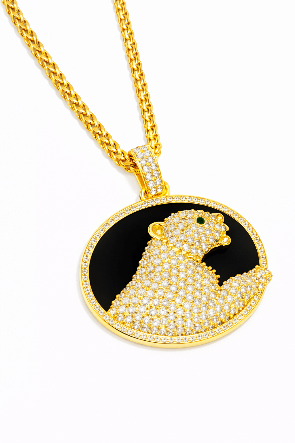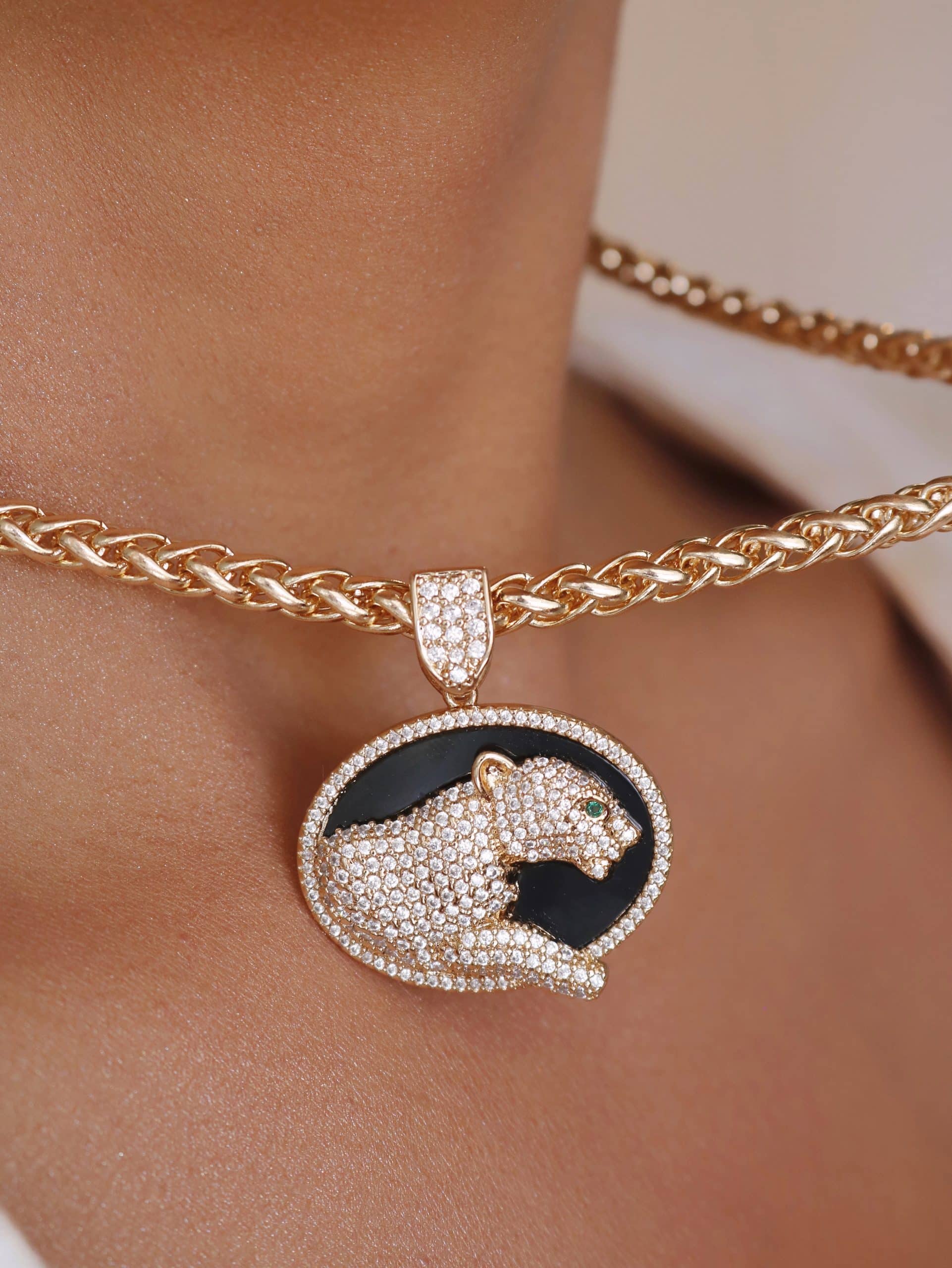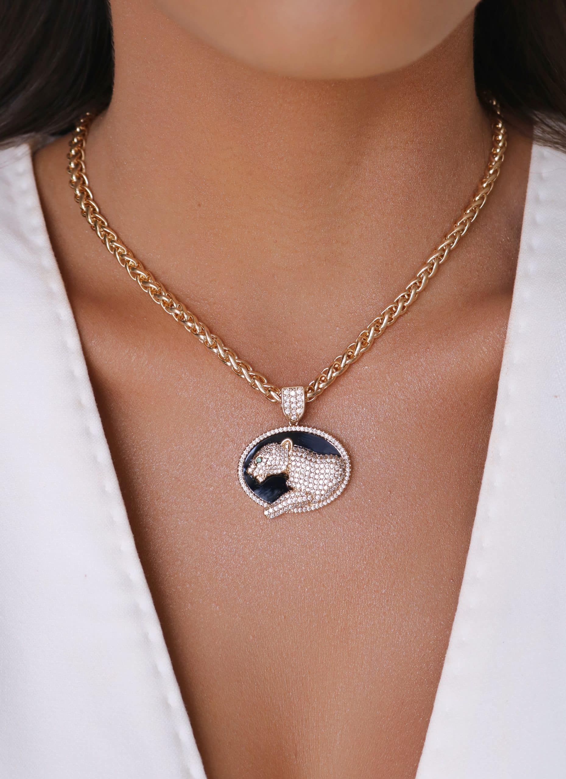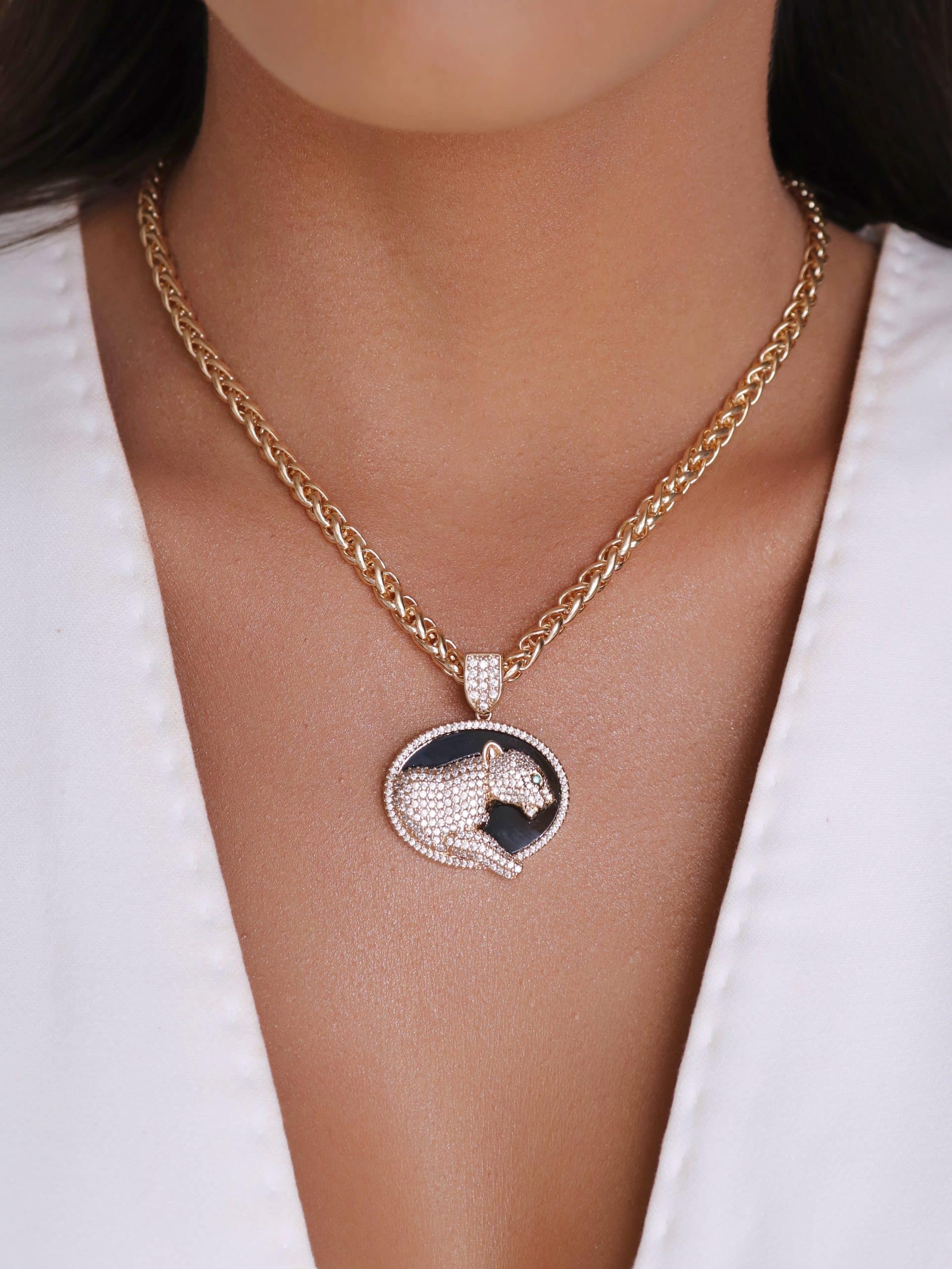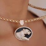 GARGANTILHA ZIRCONIA PANTERA TODA CRAVEJADA E MEDALHA NEGRA 40CM