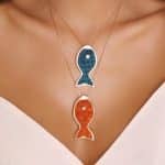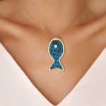 GARGANTILHA ZIRCONIA PEIXE GRANDE COM ESCAMAS CORES 45CM