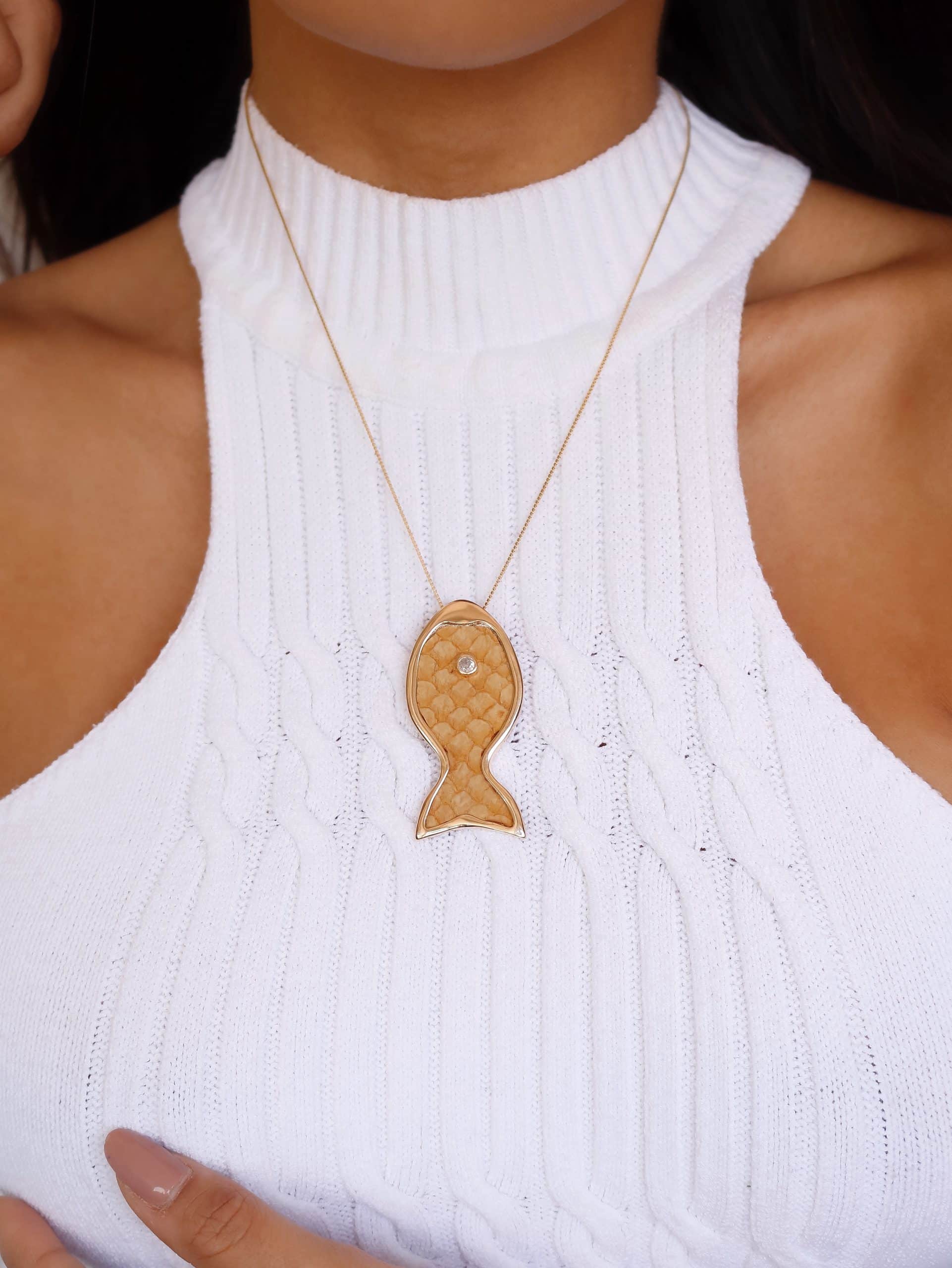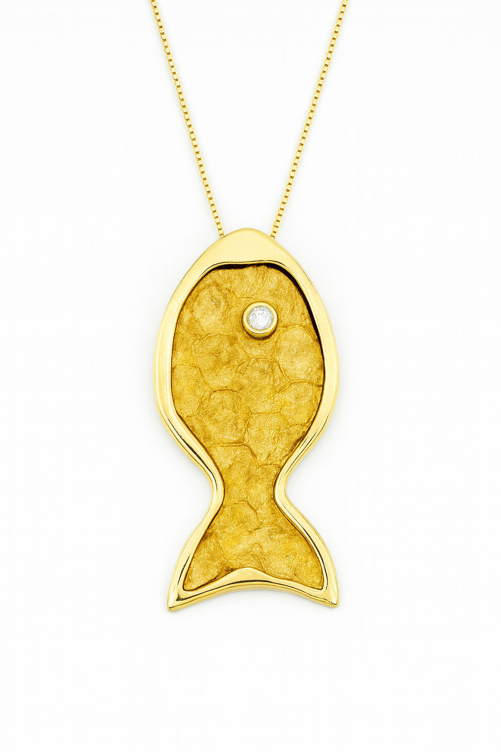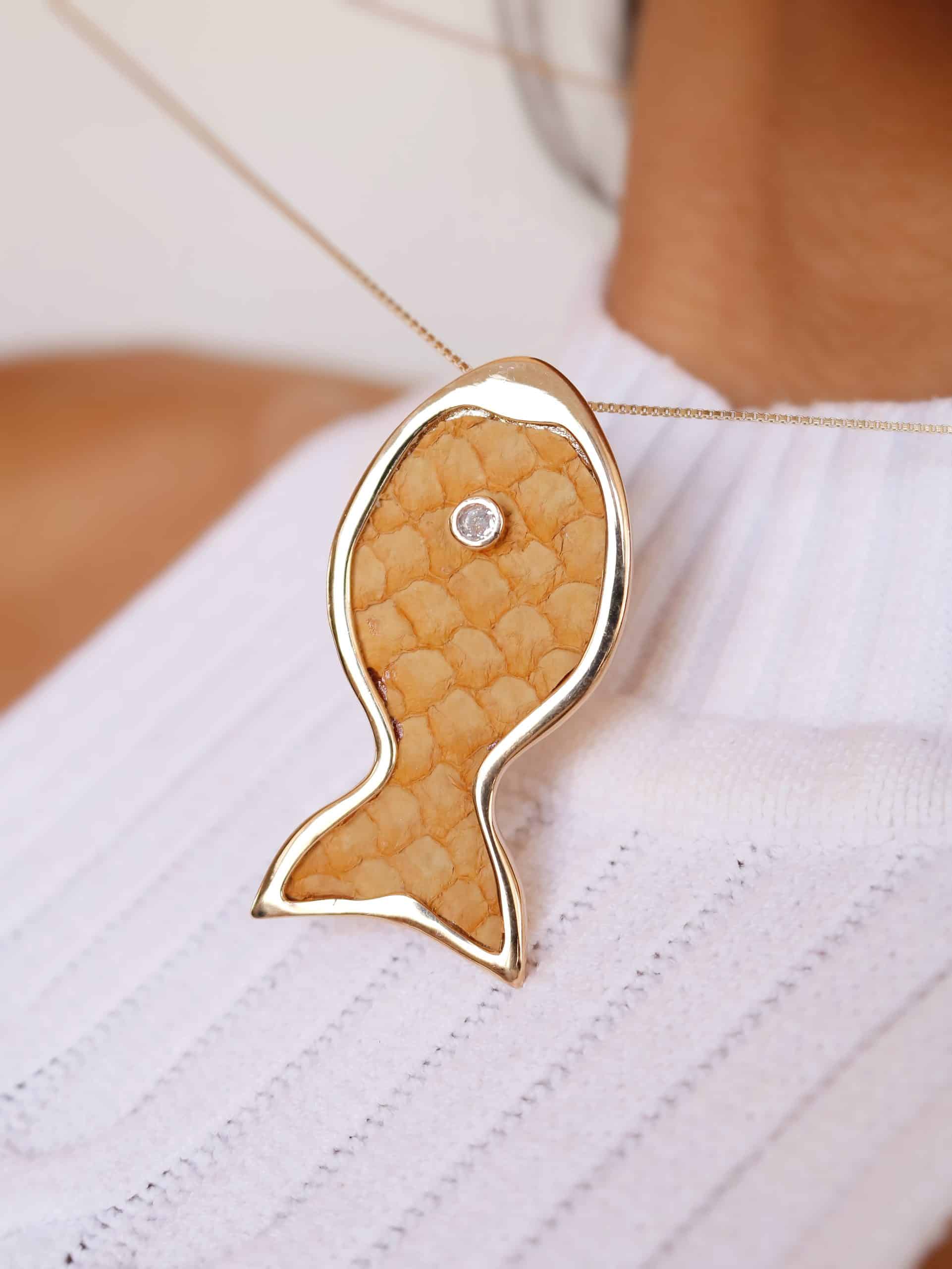 GARGANTILHA ZIRCONIA PEIXE GRANDE COM ESCAMAS CORES 45CM