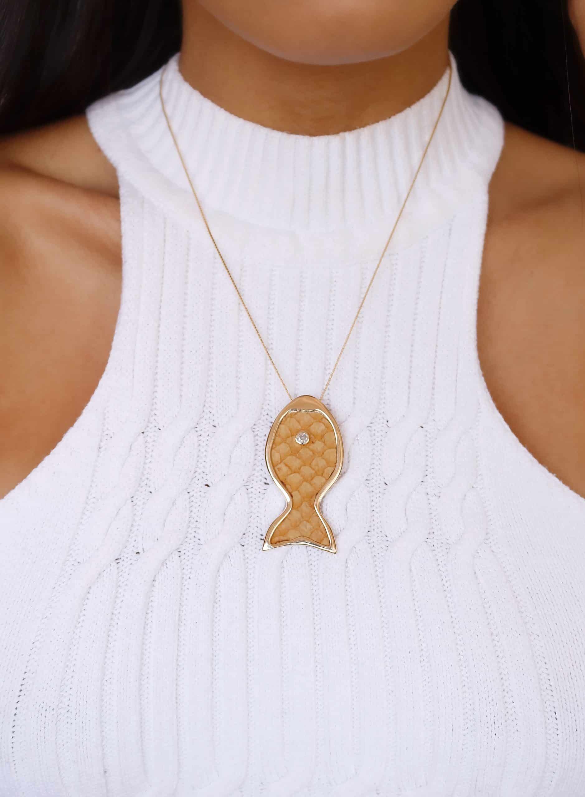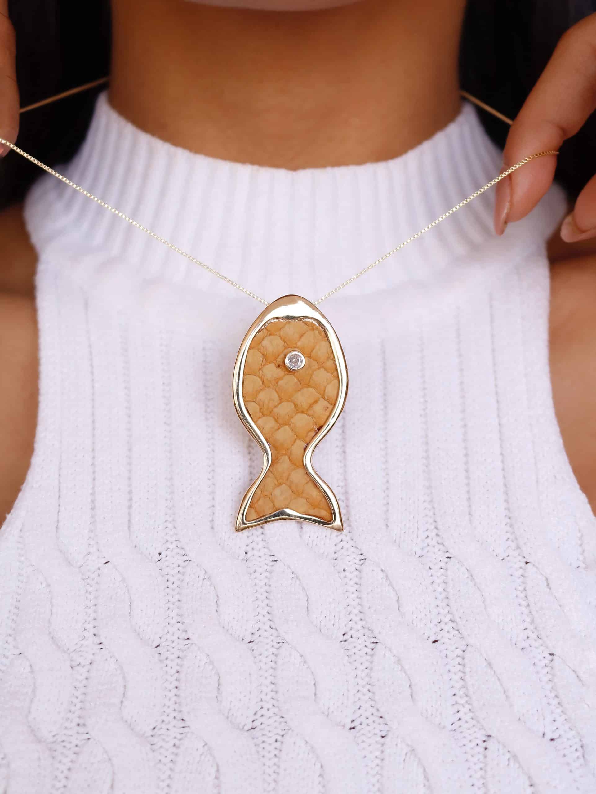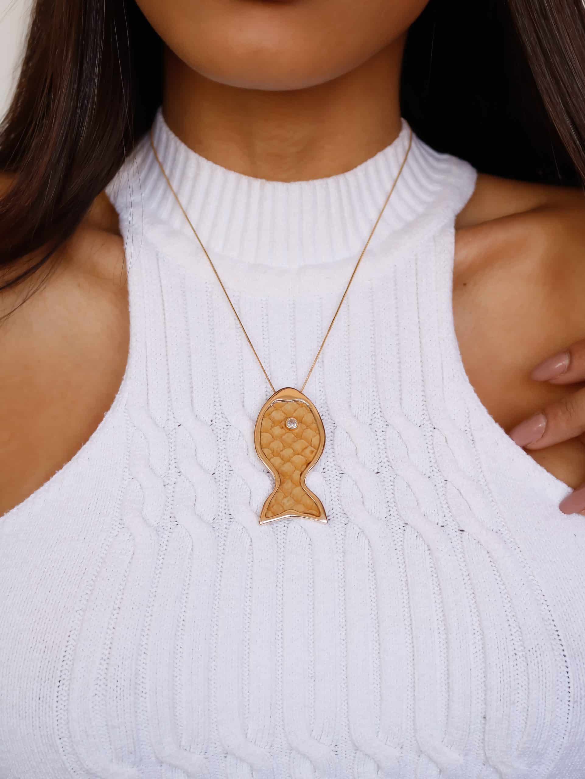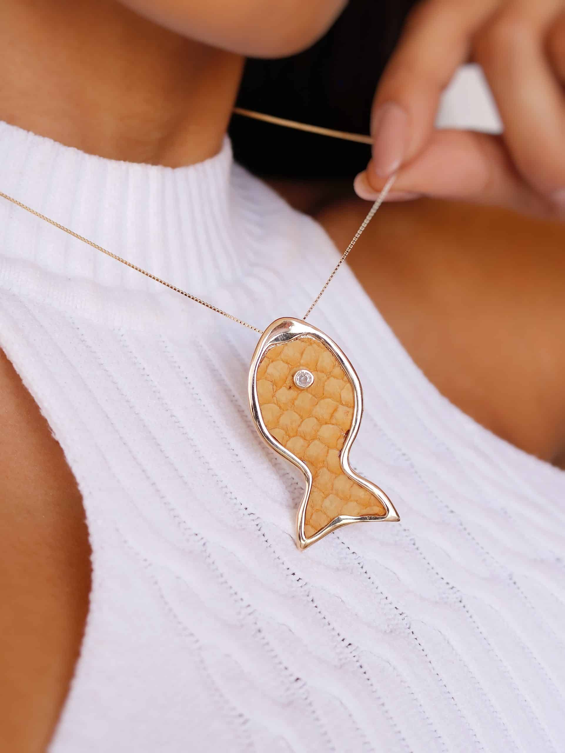 GARGANTILHA ZIRCONIA PEIXE GRANDE COM ESCAMAS CORES 45CM