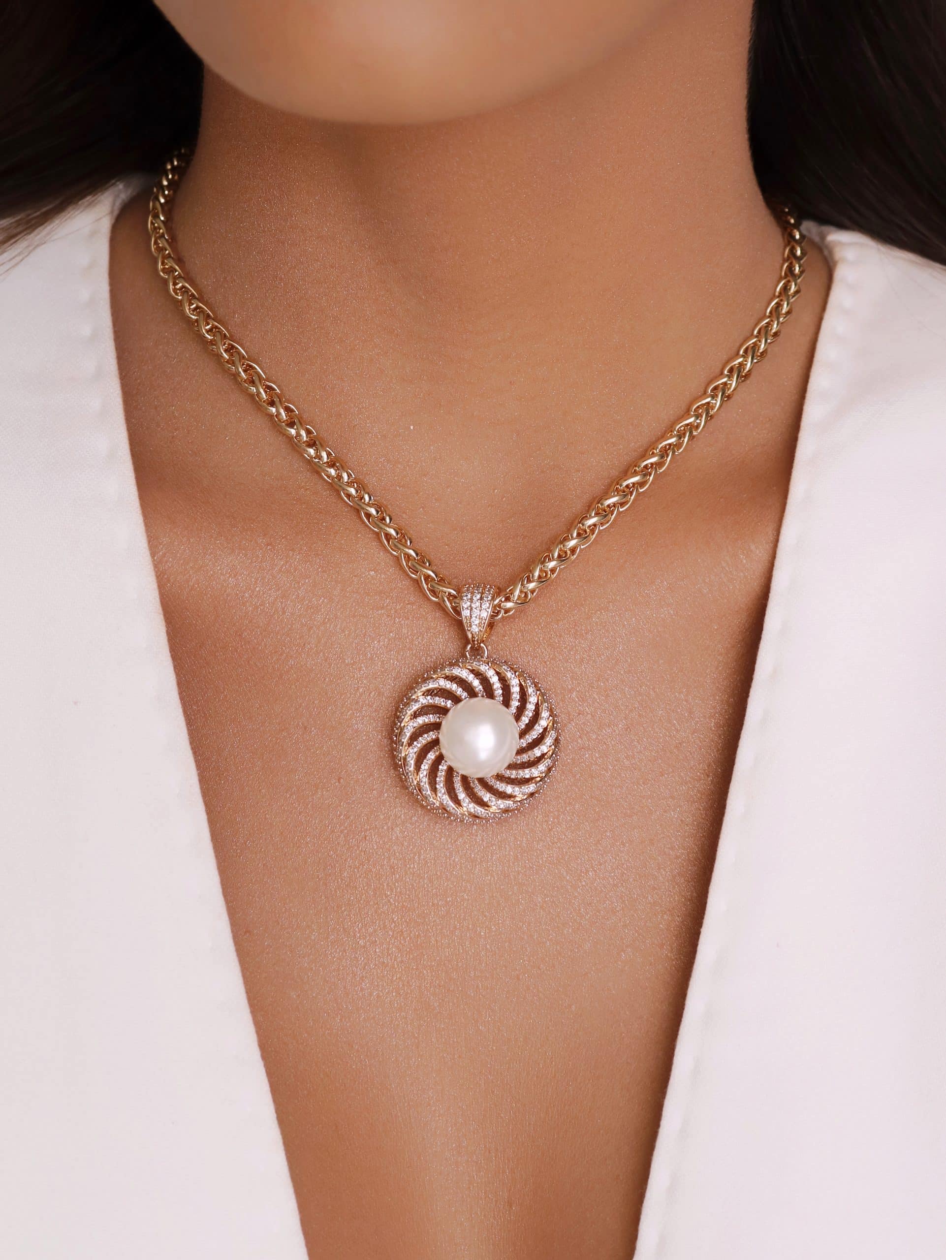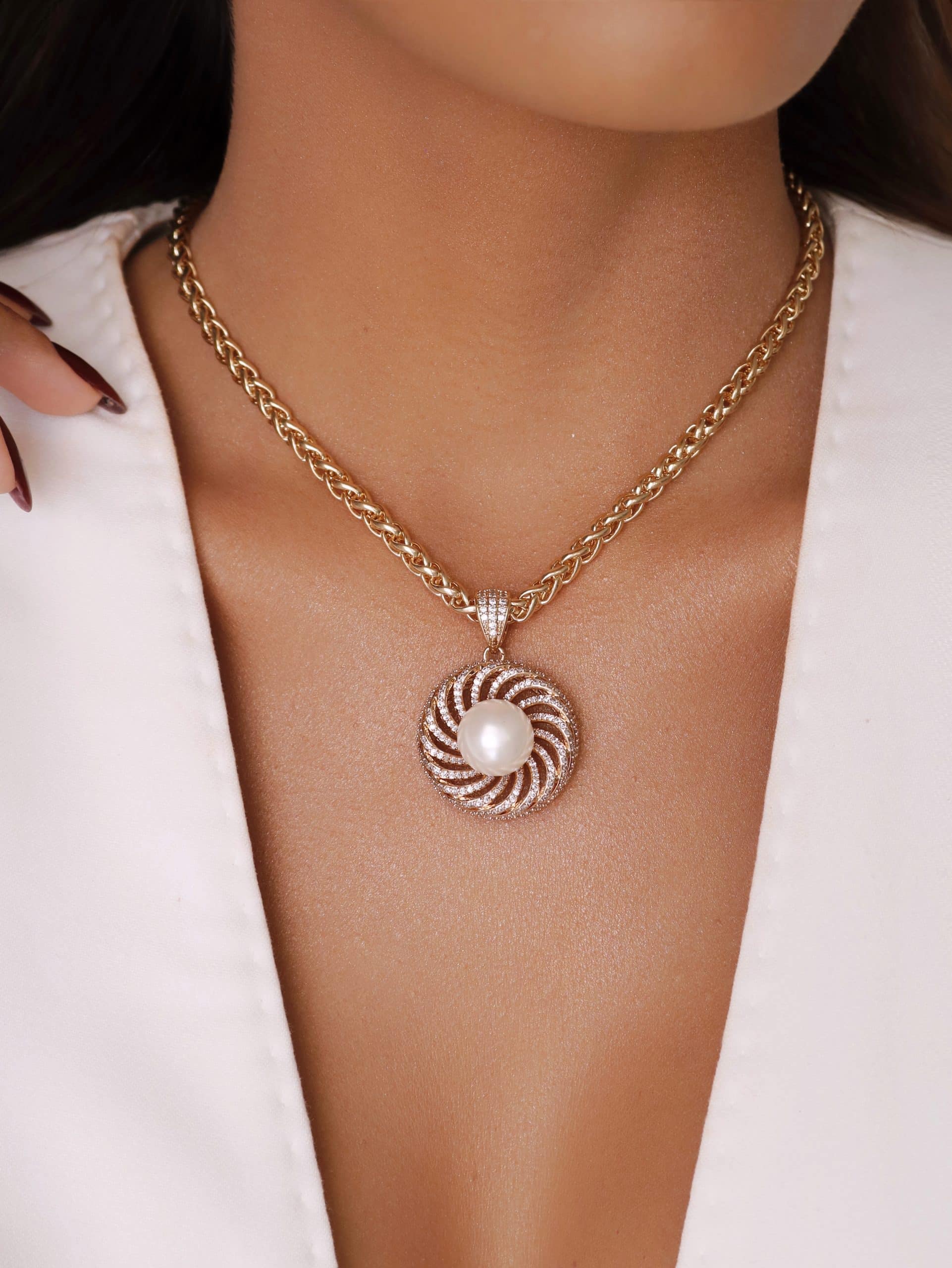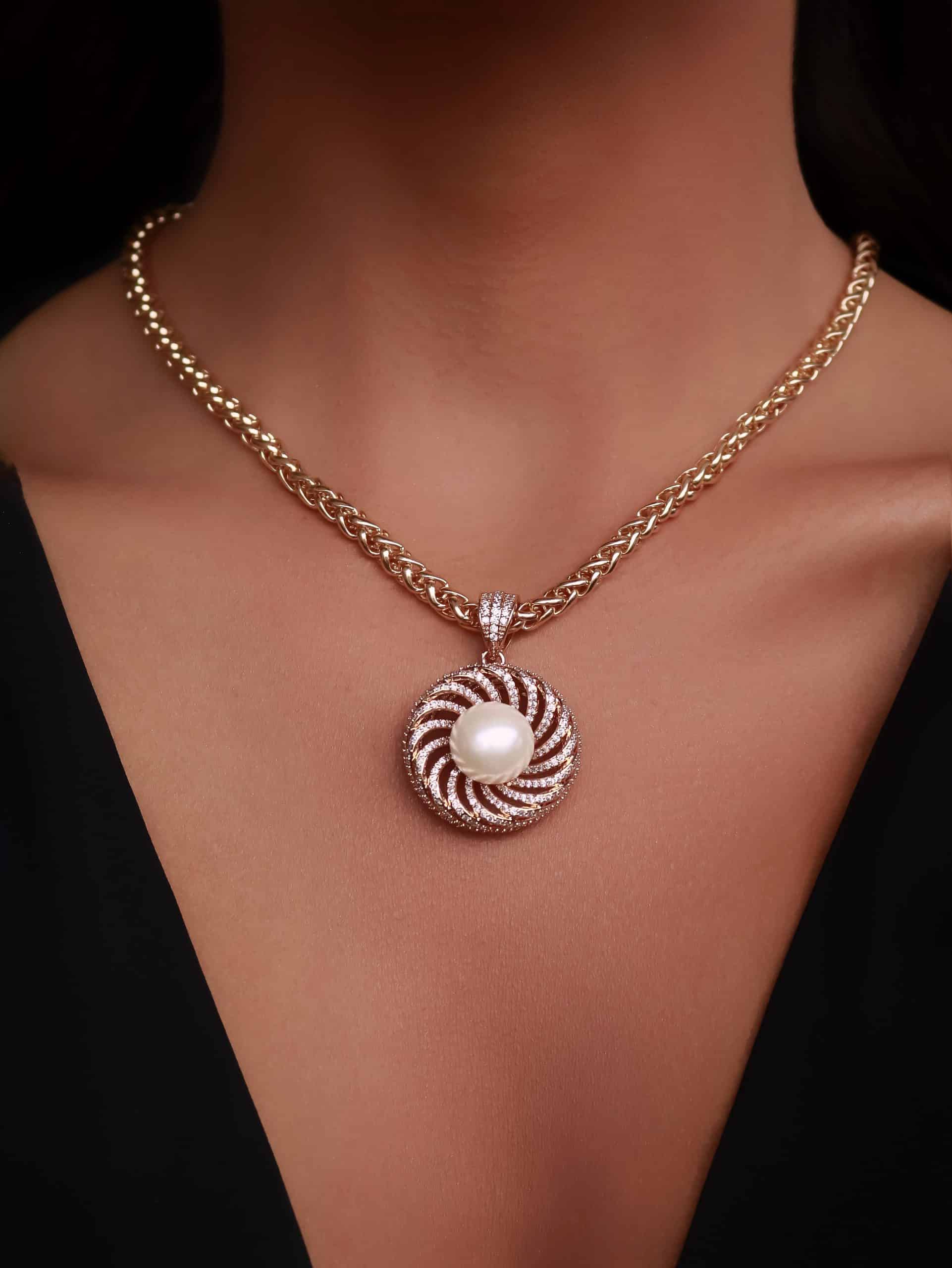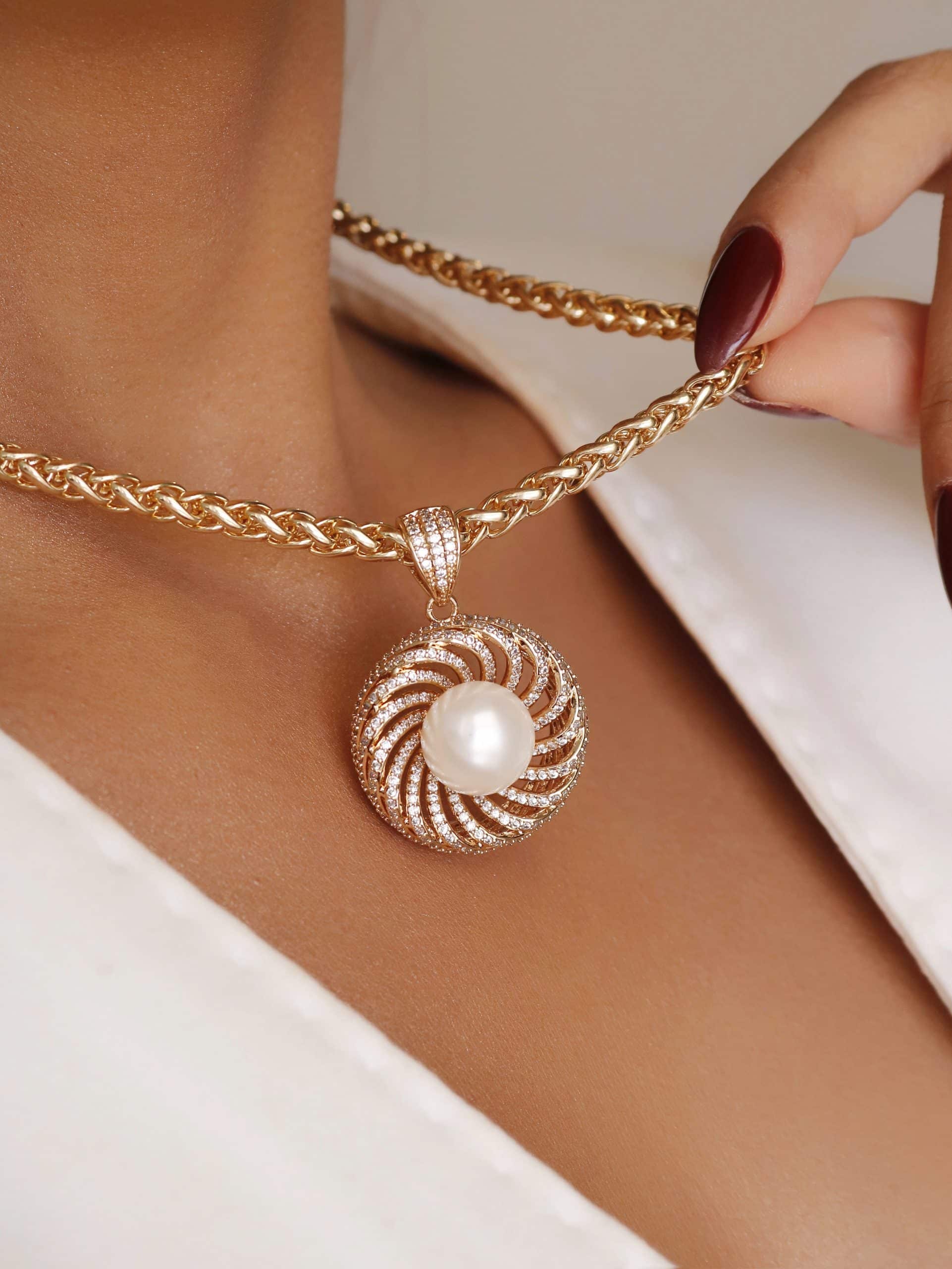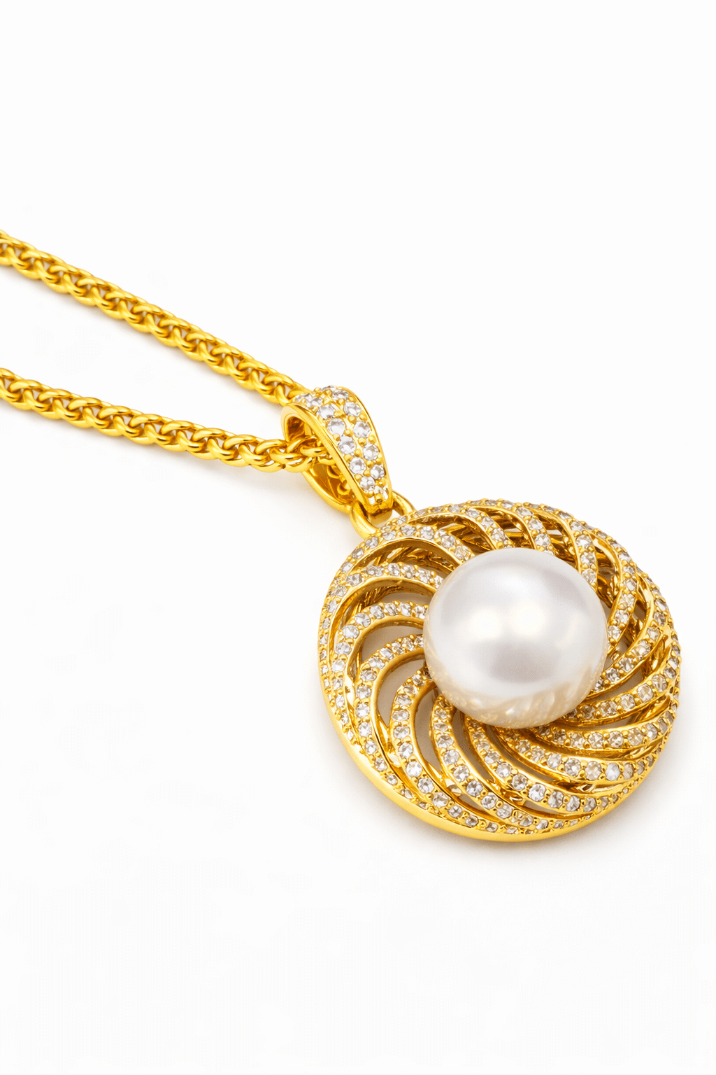 BRINCO PEROLA REDONDO CRAVEJADO E PEROLA NO MEIO