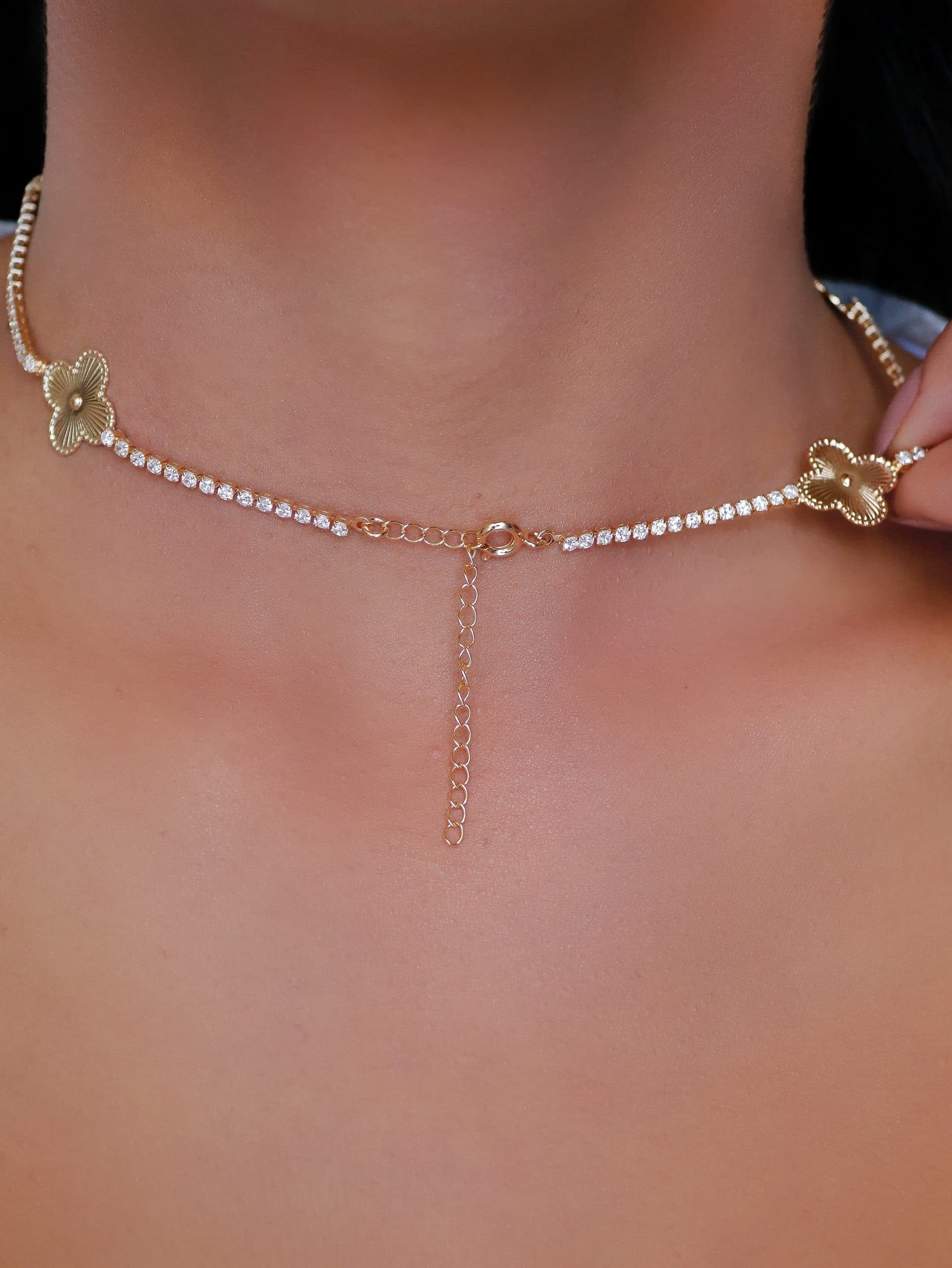 GARGANTILHA ZIRCONIA RIVIERA  COM CINCO FLORES 35 CM 14.7 MM