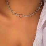 GARGANTILHA ZIRCONIA RIVIERA COM CORACAO LISO VAZADO NO MEIO