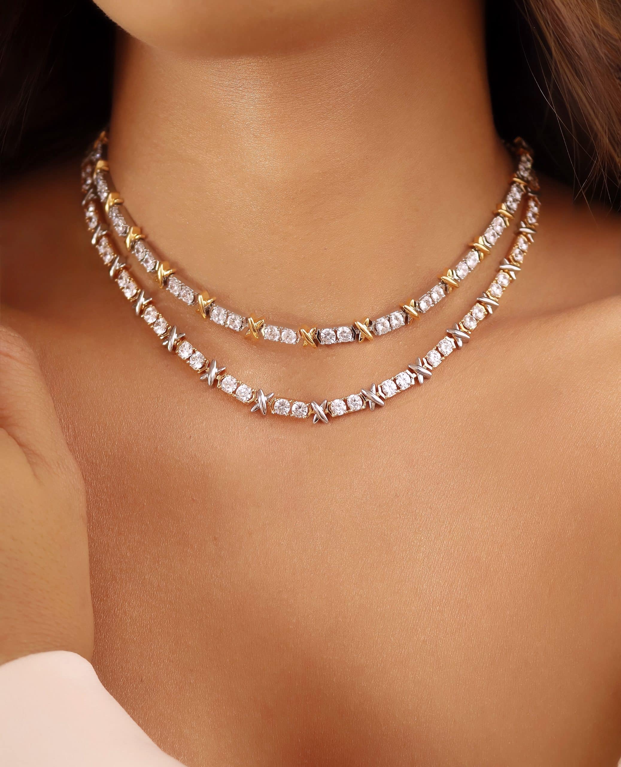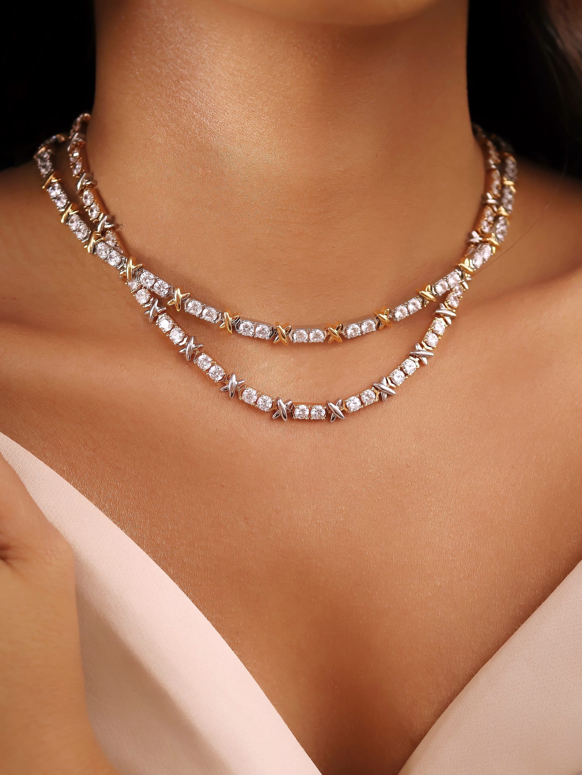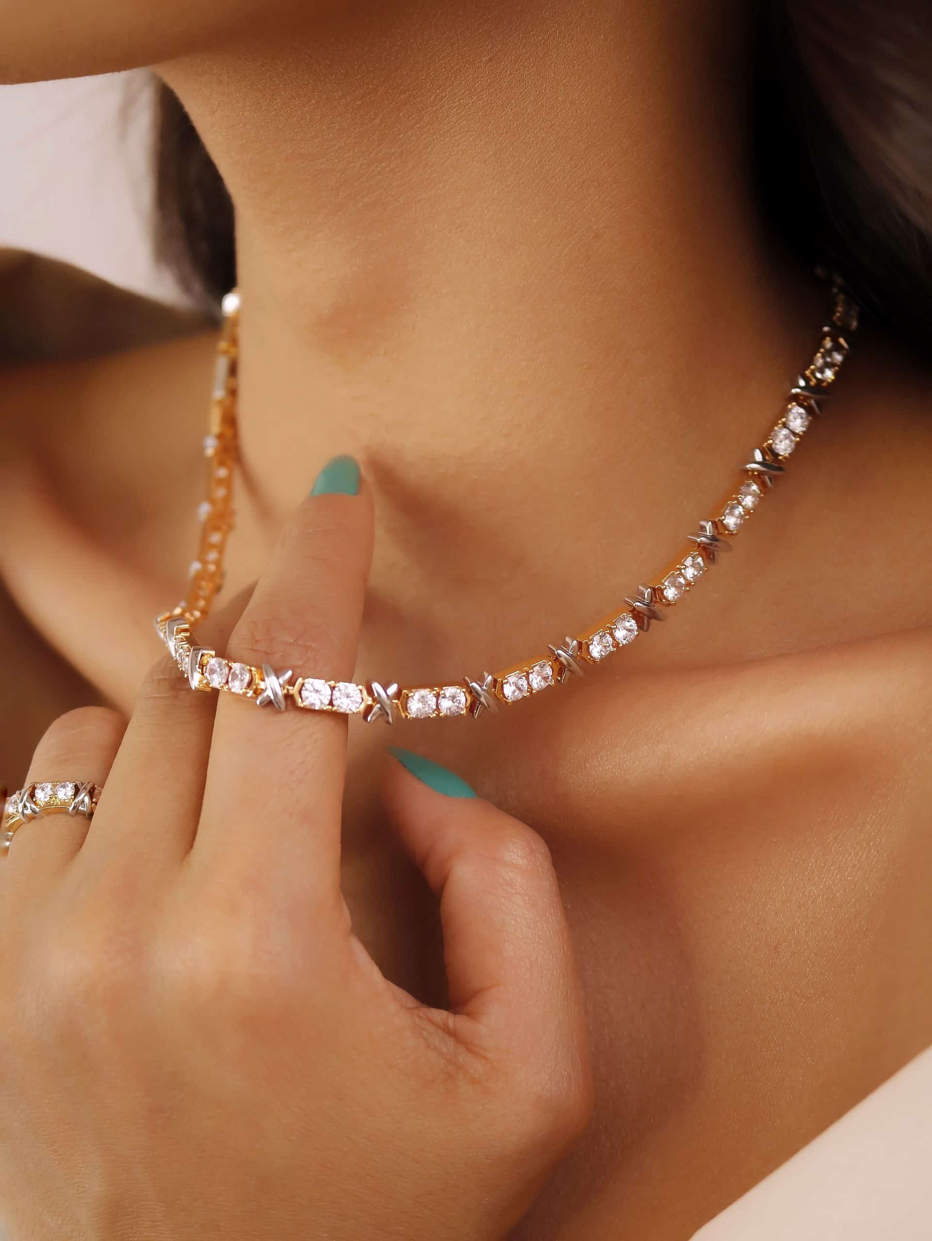 GARGANTILHA ZIRCONIA SIMBOLO X DOIS BANHOS 40CM