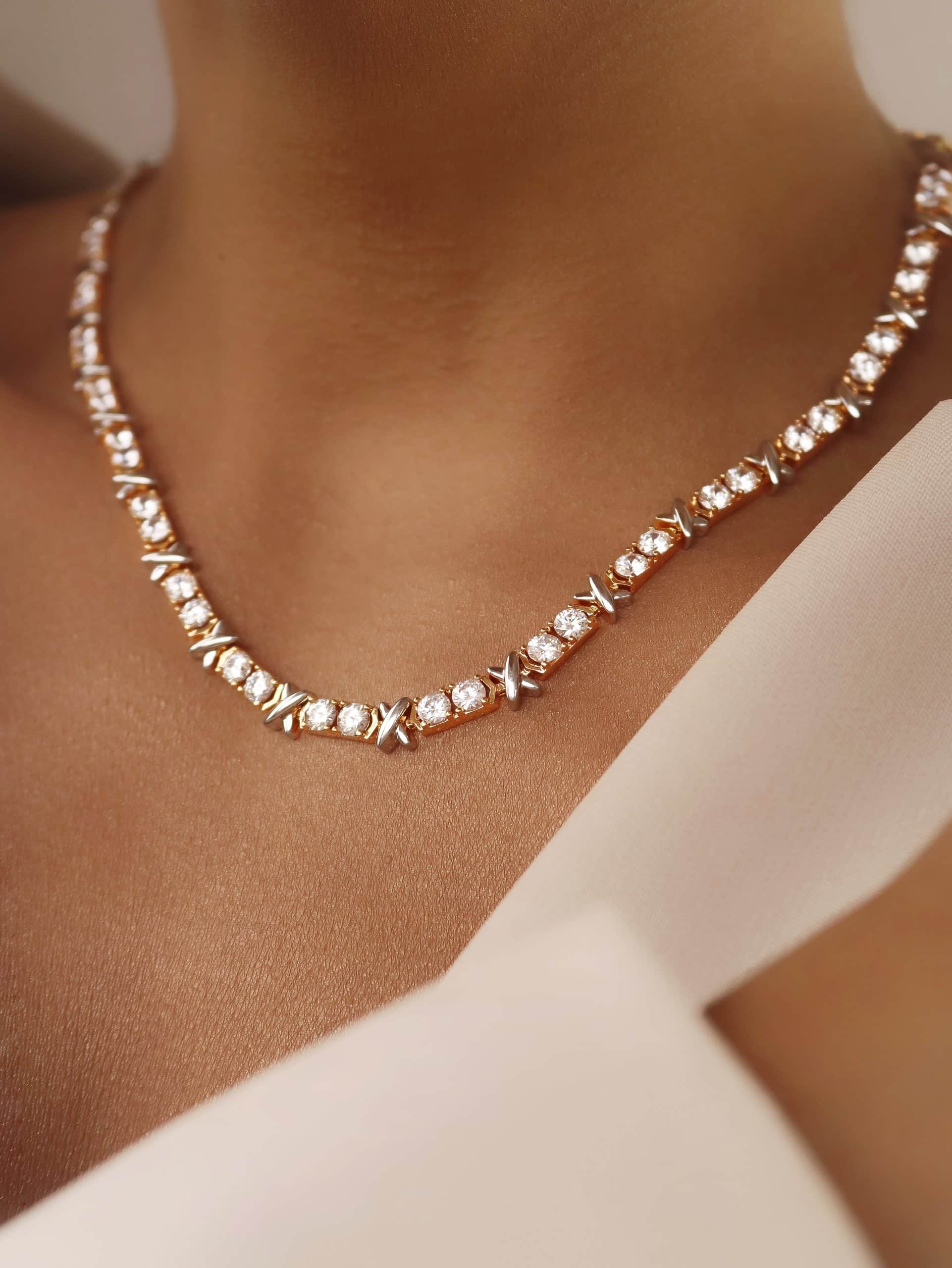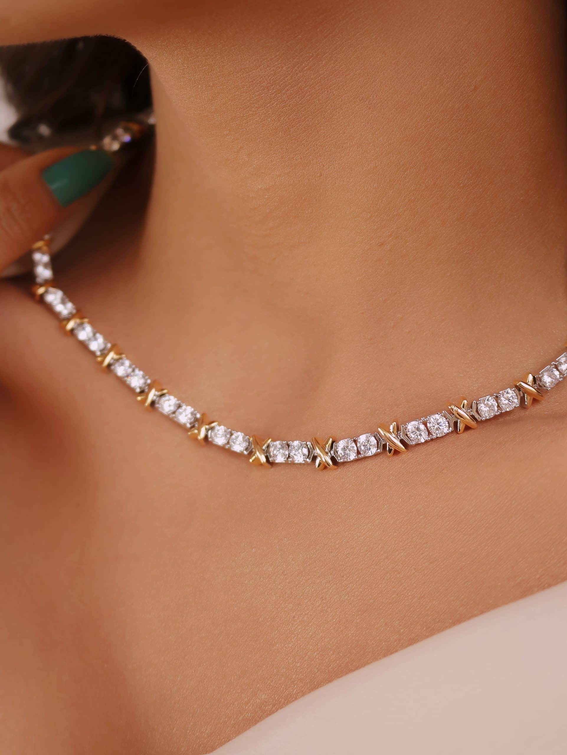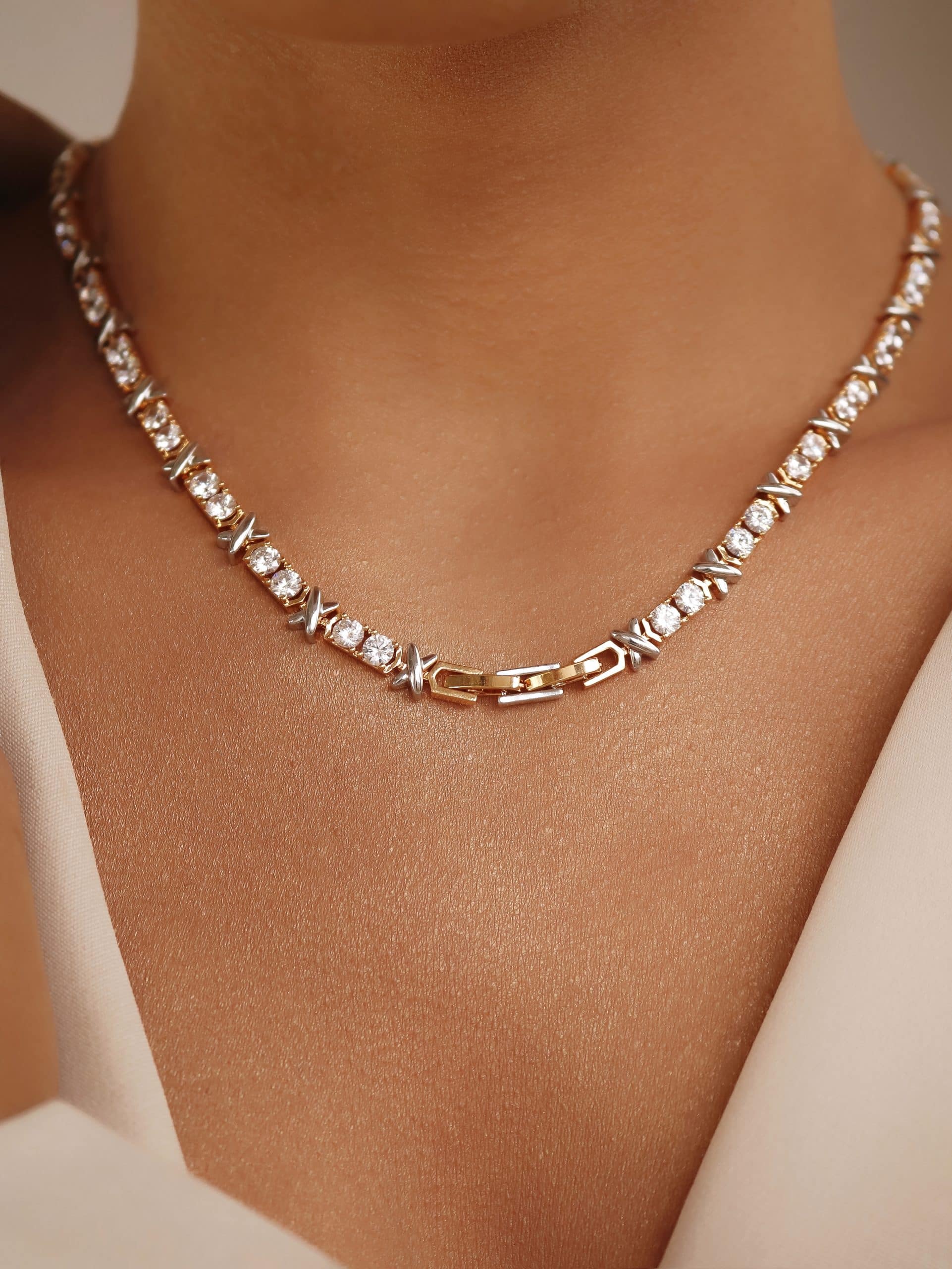 GARGANTILHA ZIRCONIA SIMBOLO X DOIS BANHOS 40CM