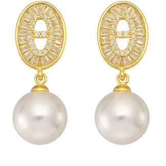 BRINCO PEROLA COM A BASE CRAVEJADA E PEROLA ACHATADA CRAVEJADA EM VOLTA PENDURADA