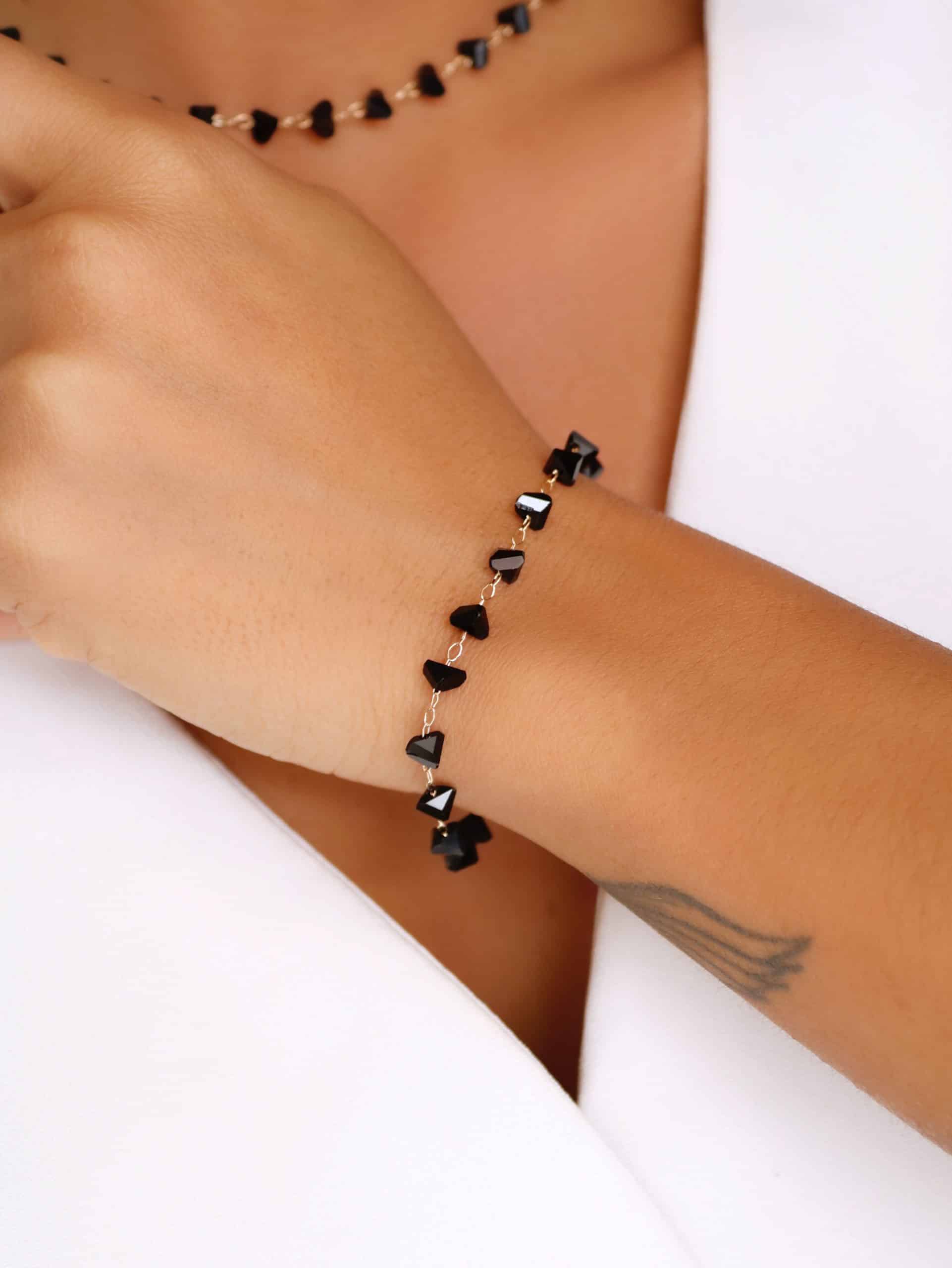 PULSEIRA LISA COM PEDRAS NEGRAS