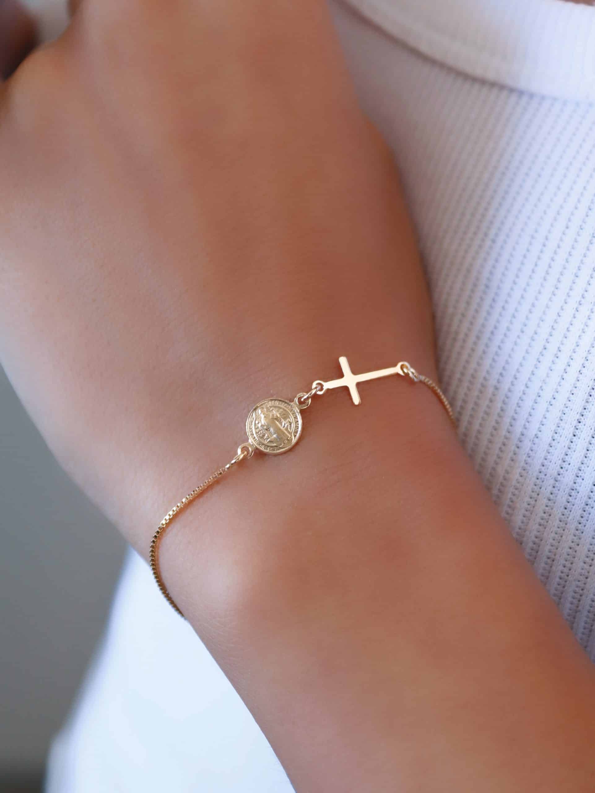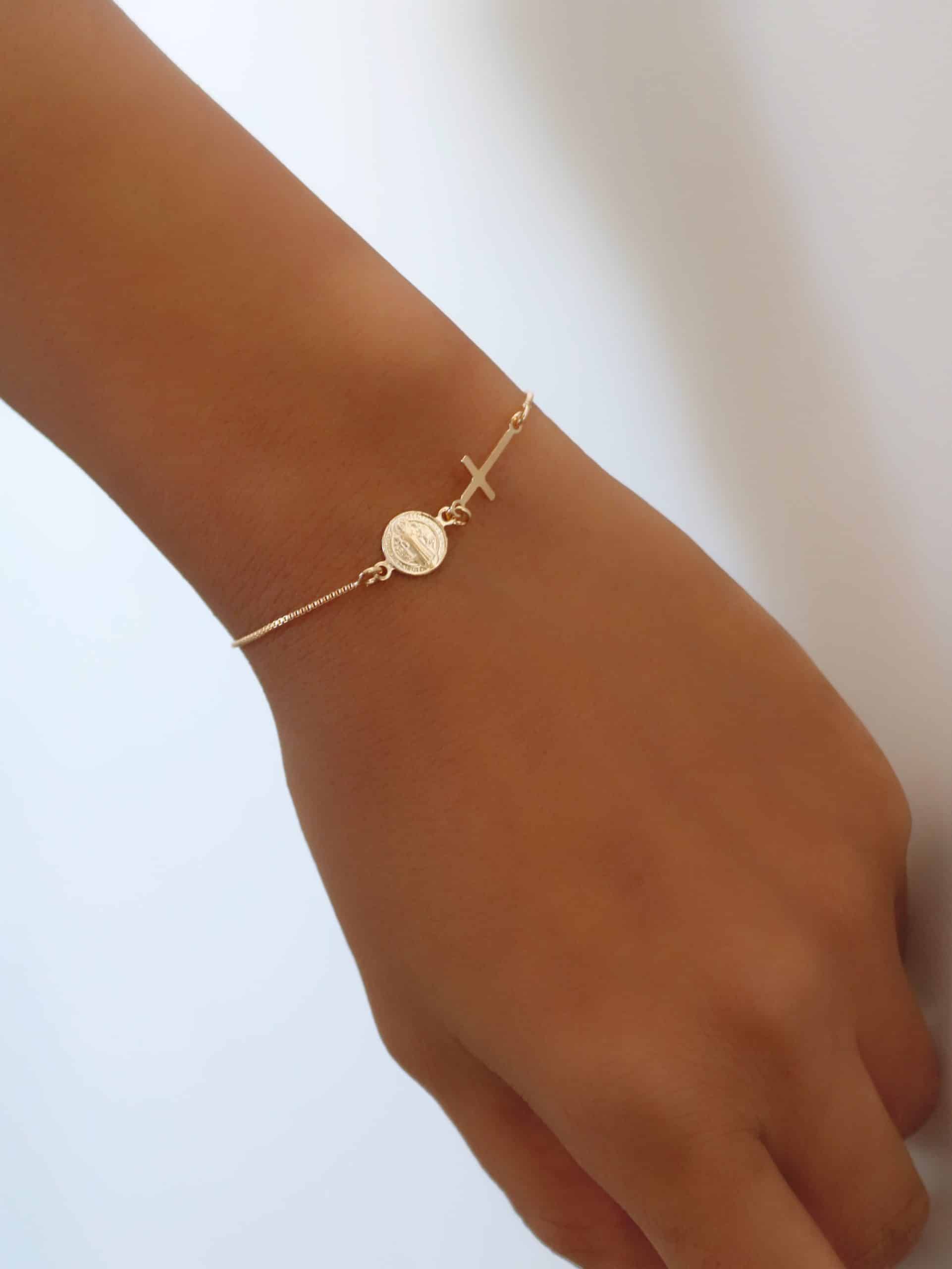 PULSEIRA LISA COM SAO BENTO E CRUZ 8.3 MM