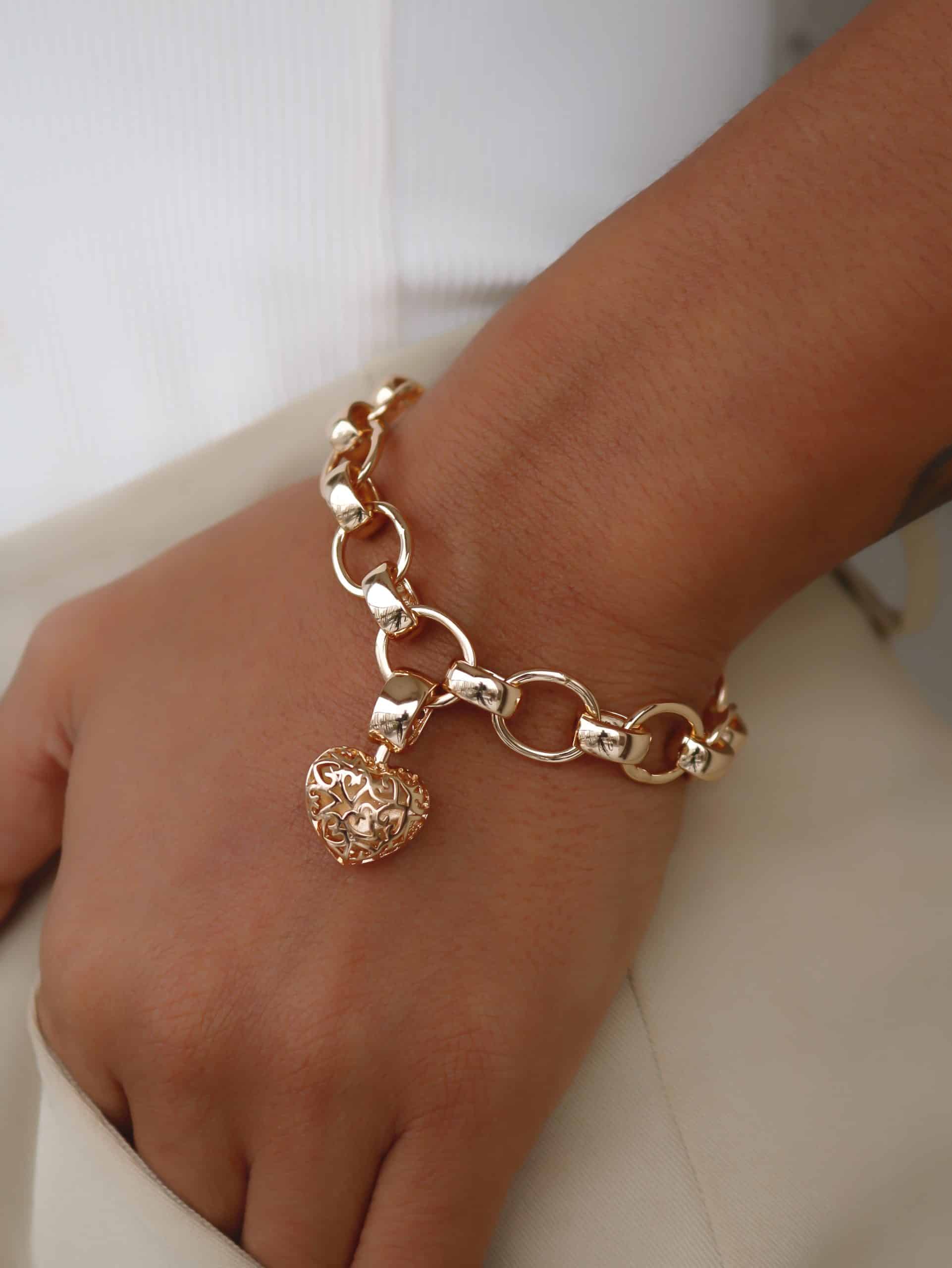 PULSEIRA LISA PINGENTE DE CORACAO VAZADO ATRAS