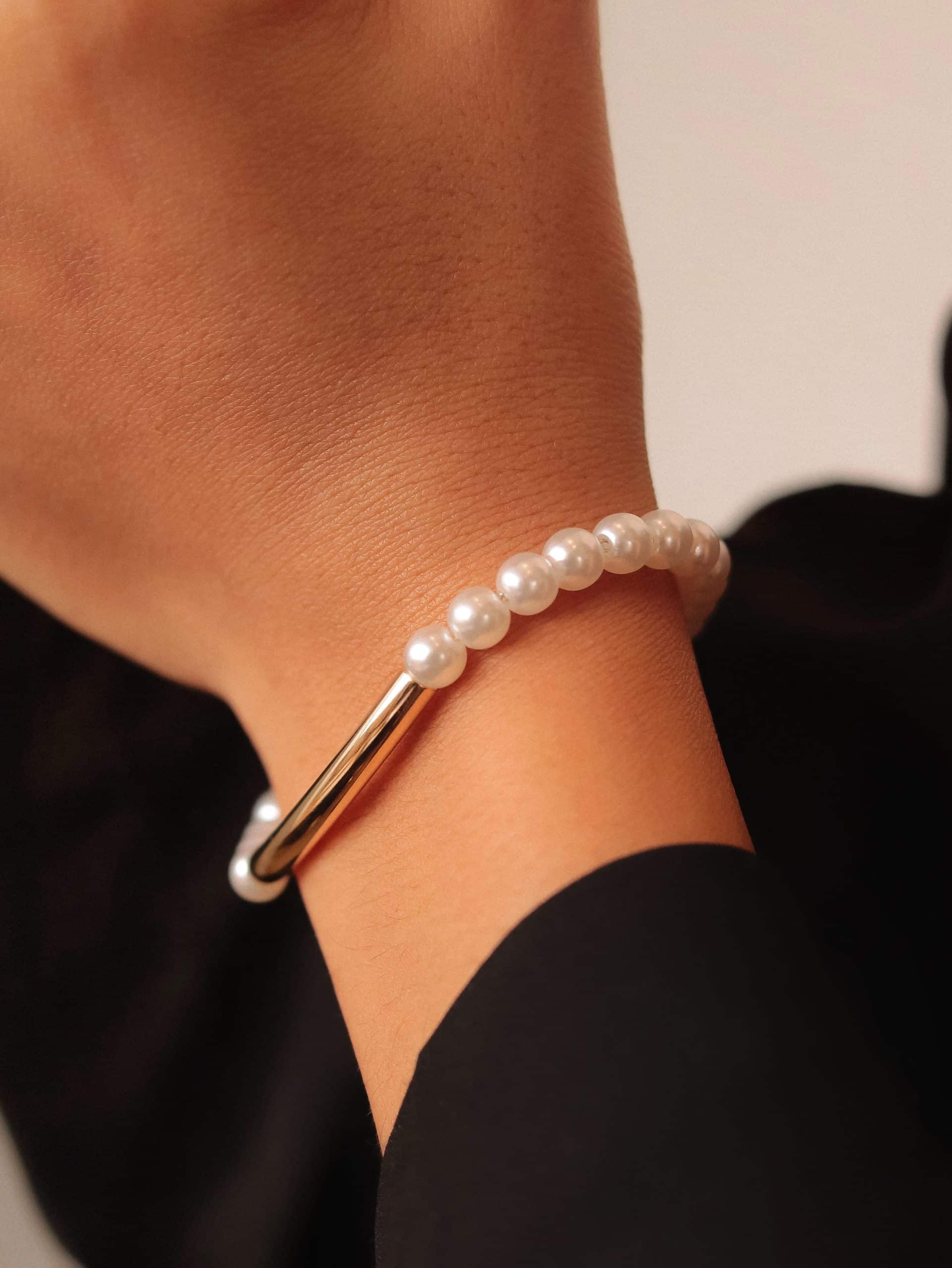 PULSEIRA PEROLA COM CANUTILHO LISO QUATRO PEROLAS E CHAMBALA
