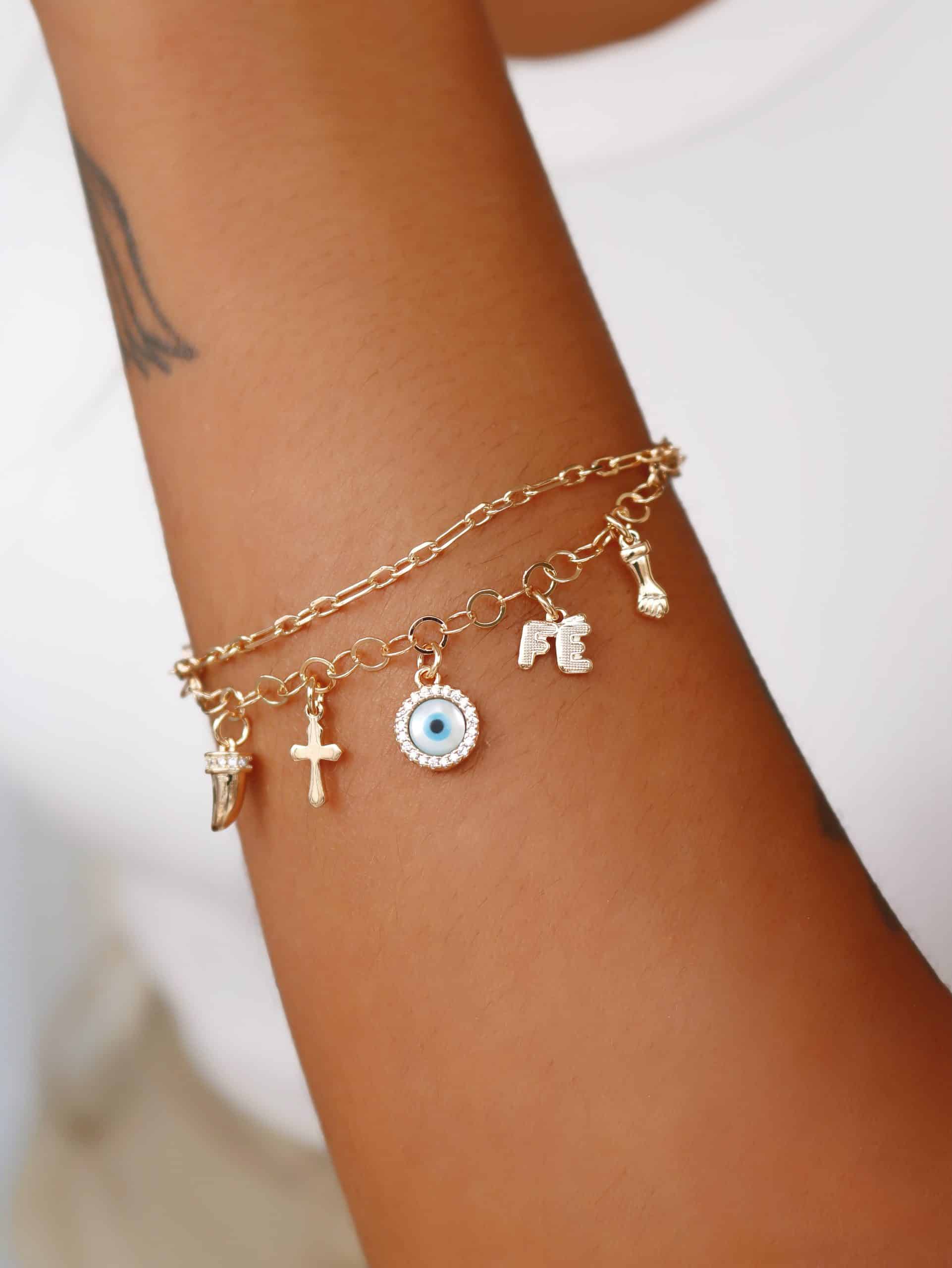 PULSEIRA ZIRCONIA BOLSA SAPATO E CORACAO
