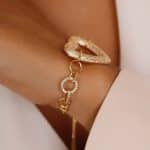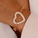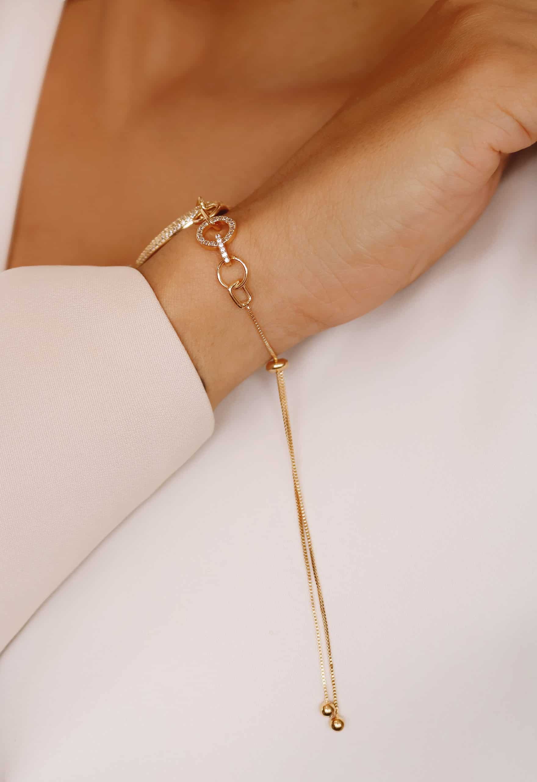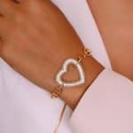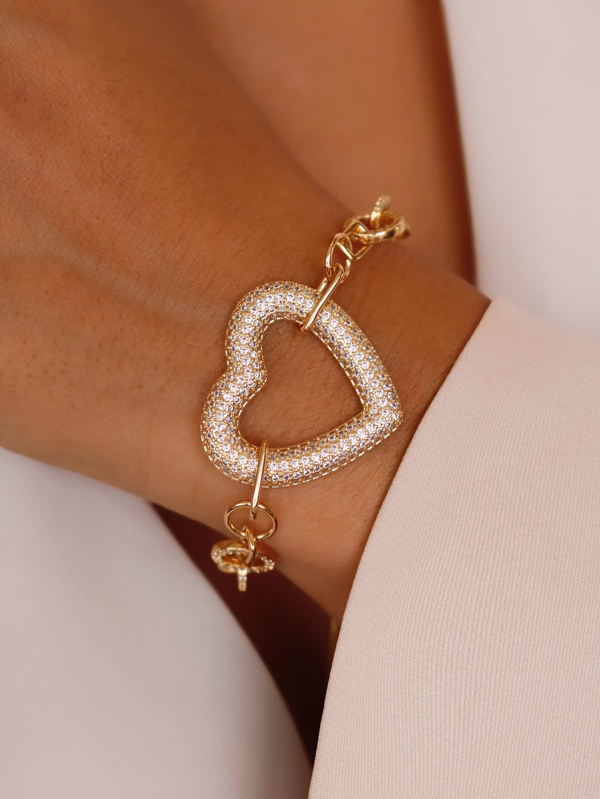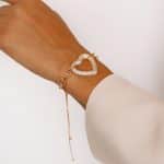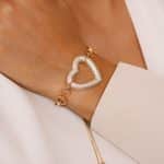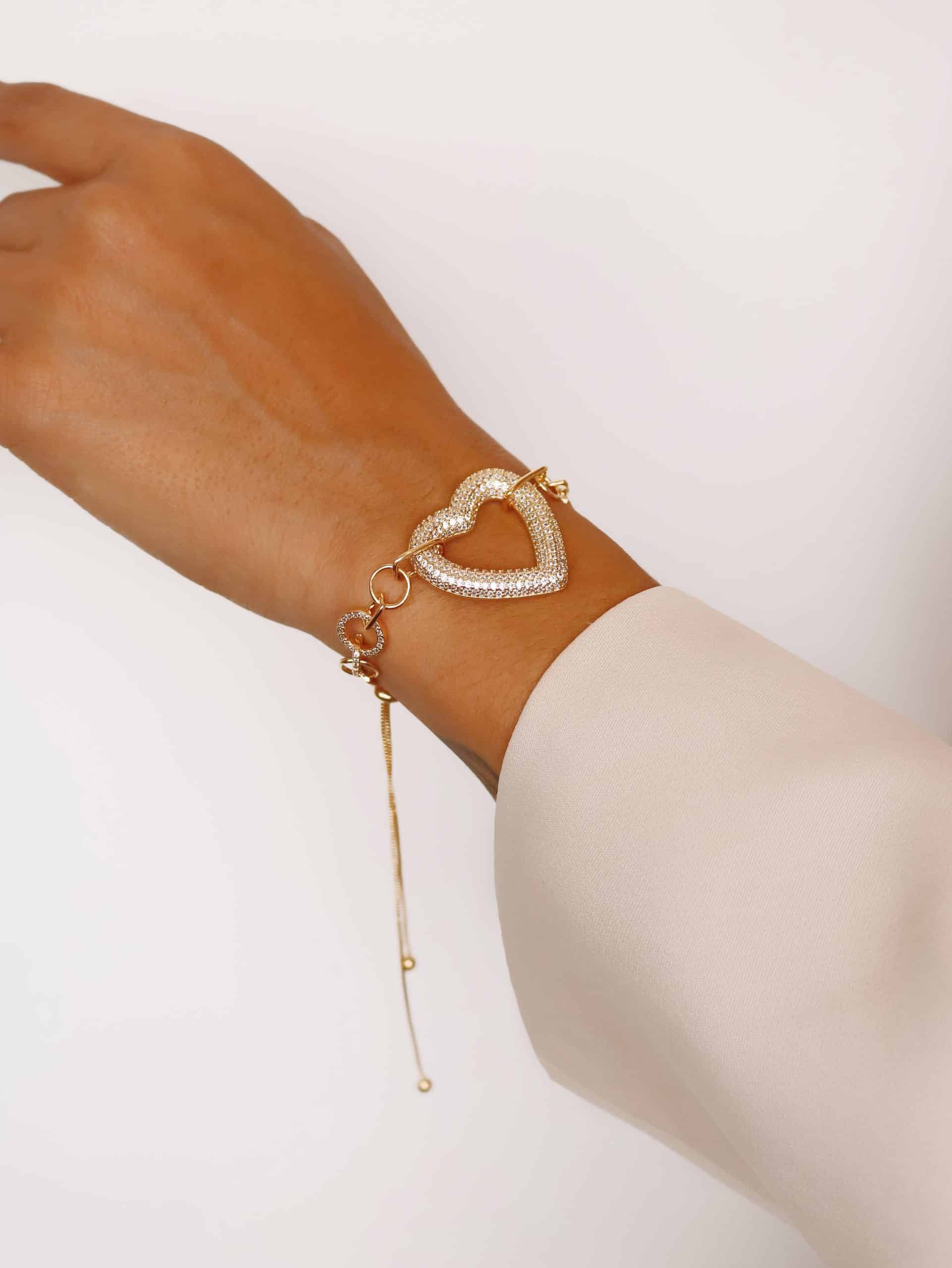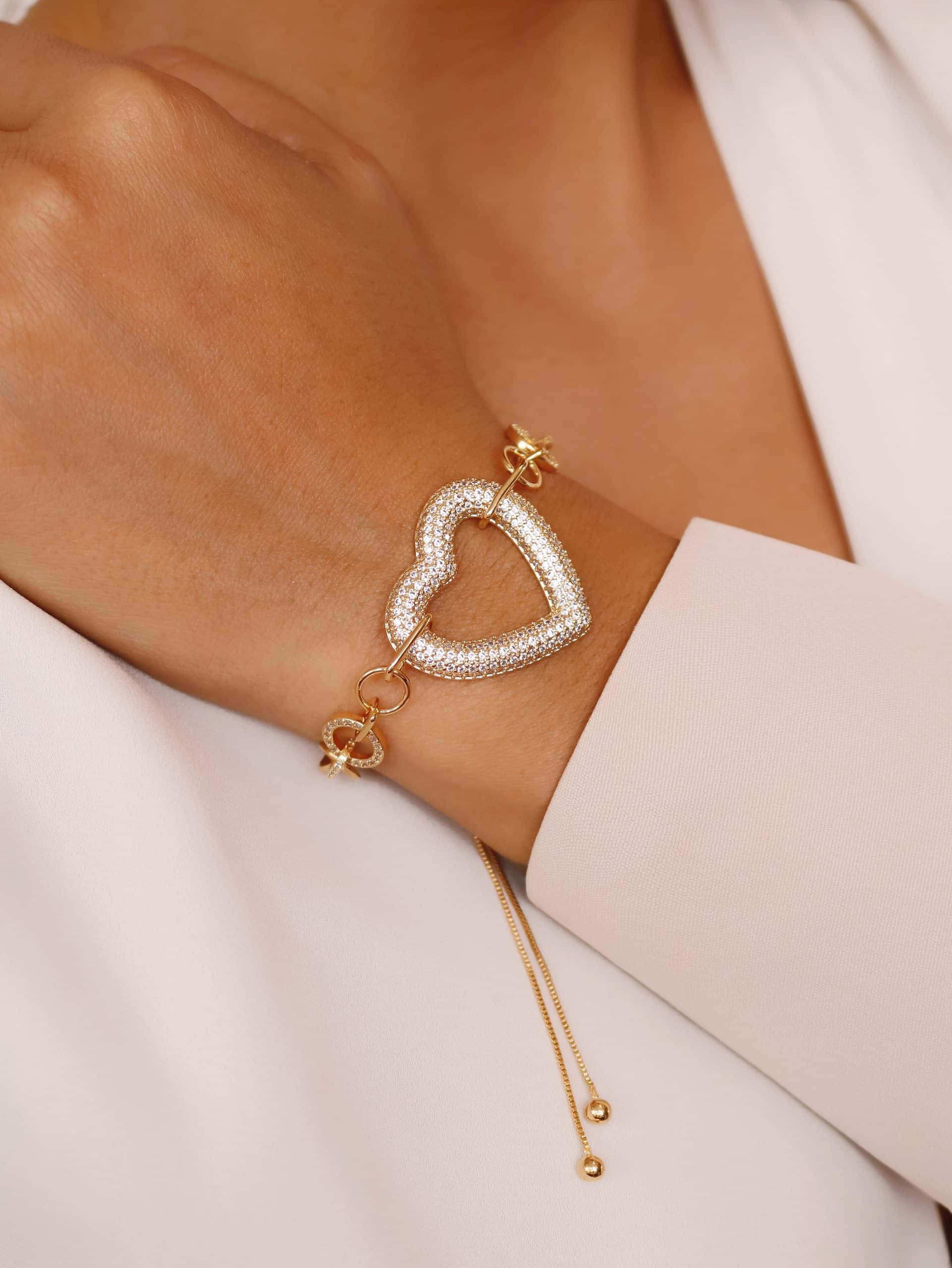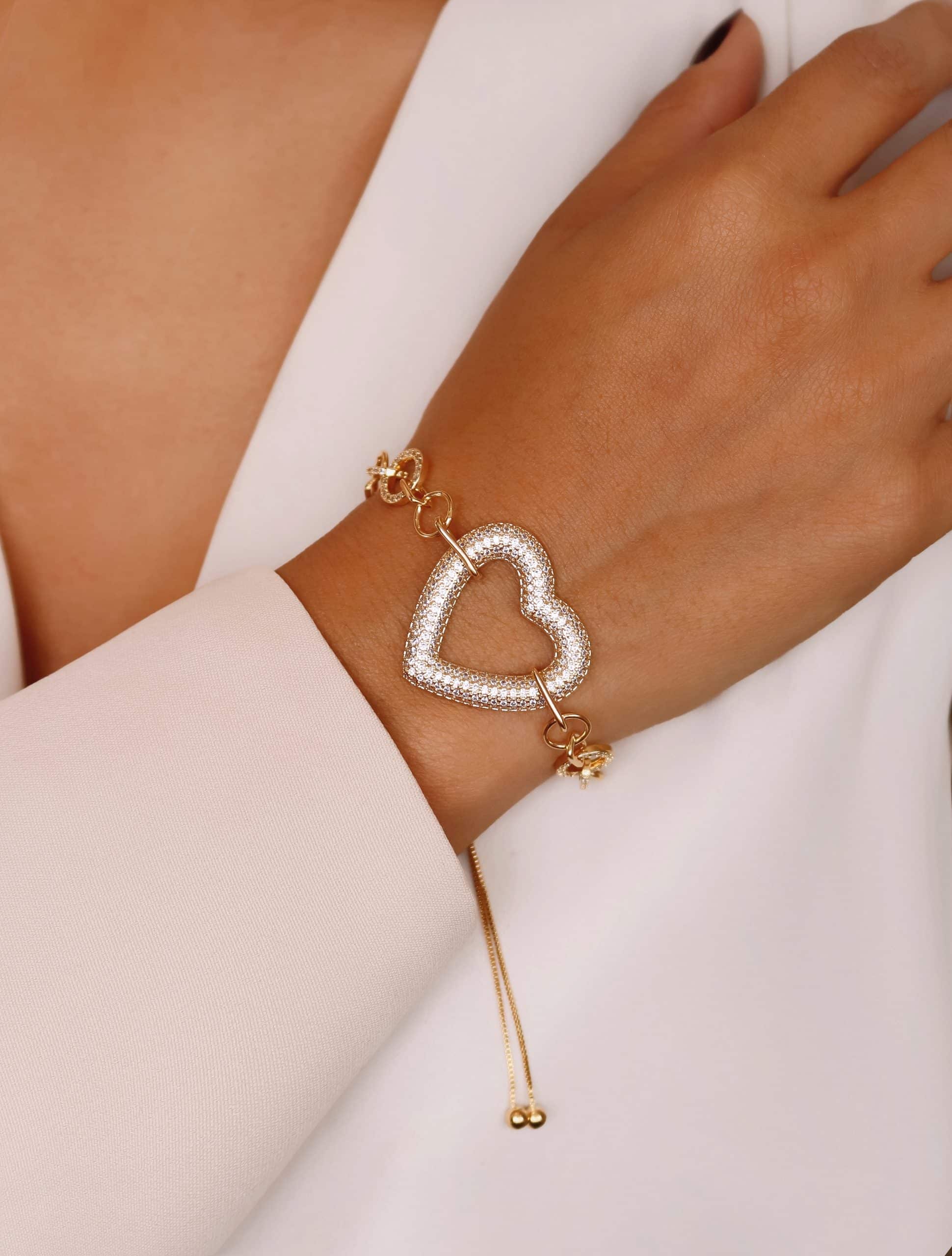 PULSEIRA ZIRCONIA CORACAO COM ELOS LISOS E CRAVEJADOS REGULAGEM CHAMBALA