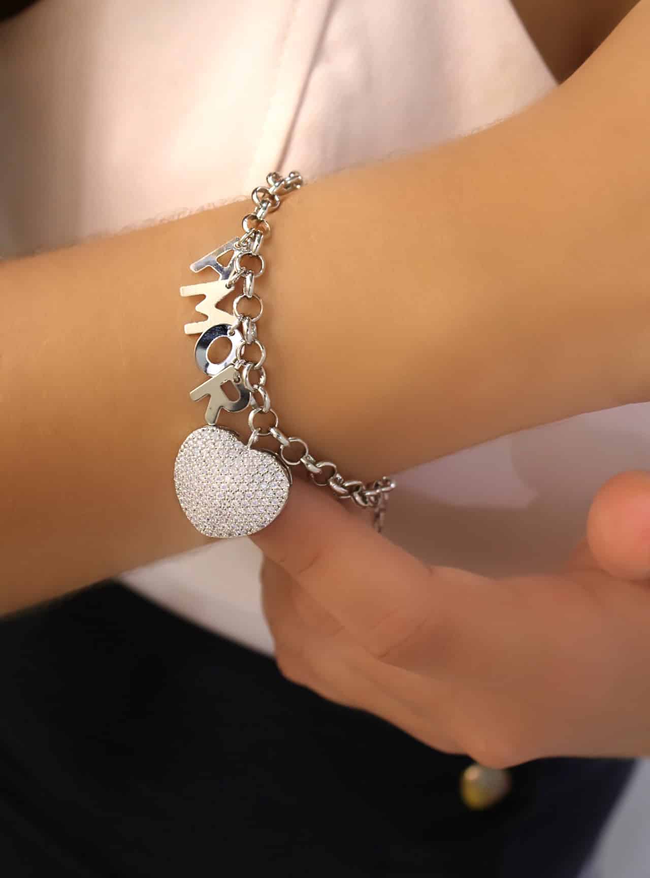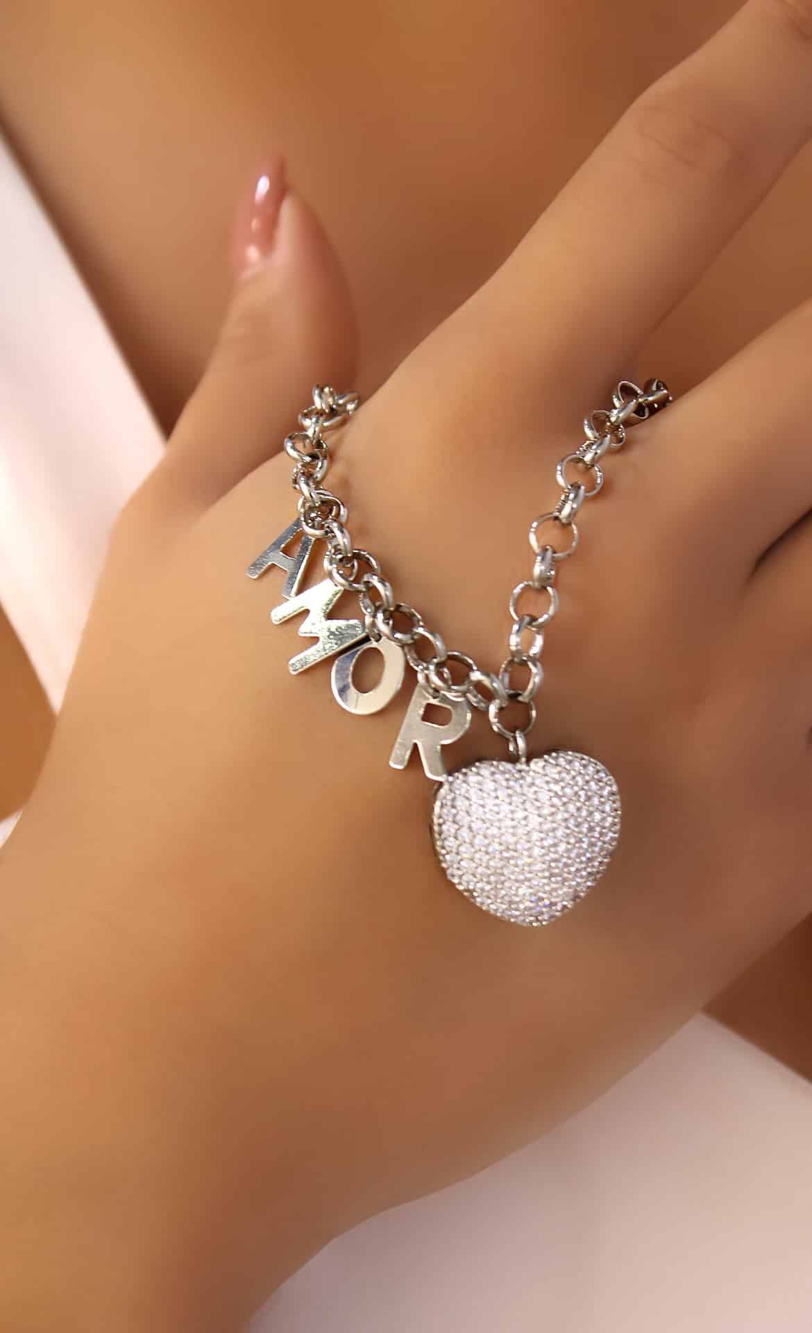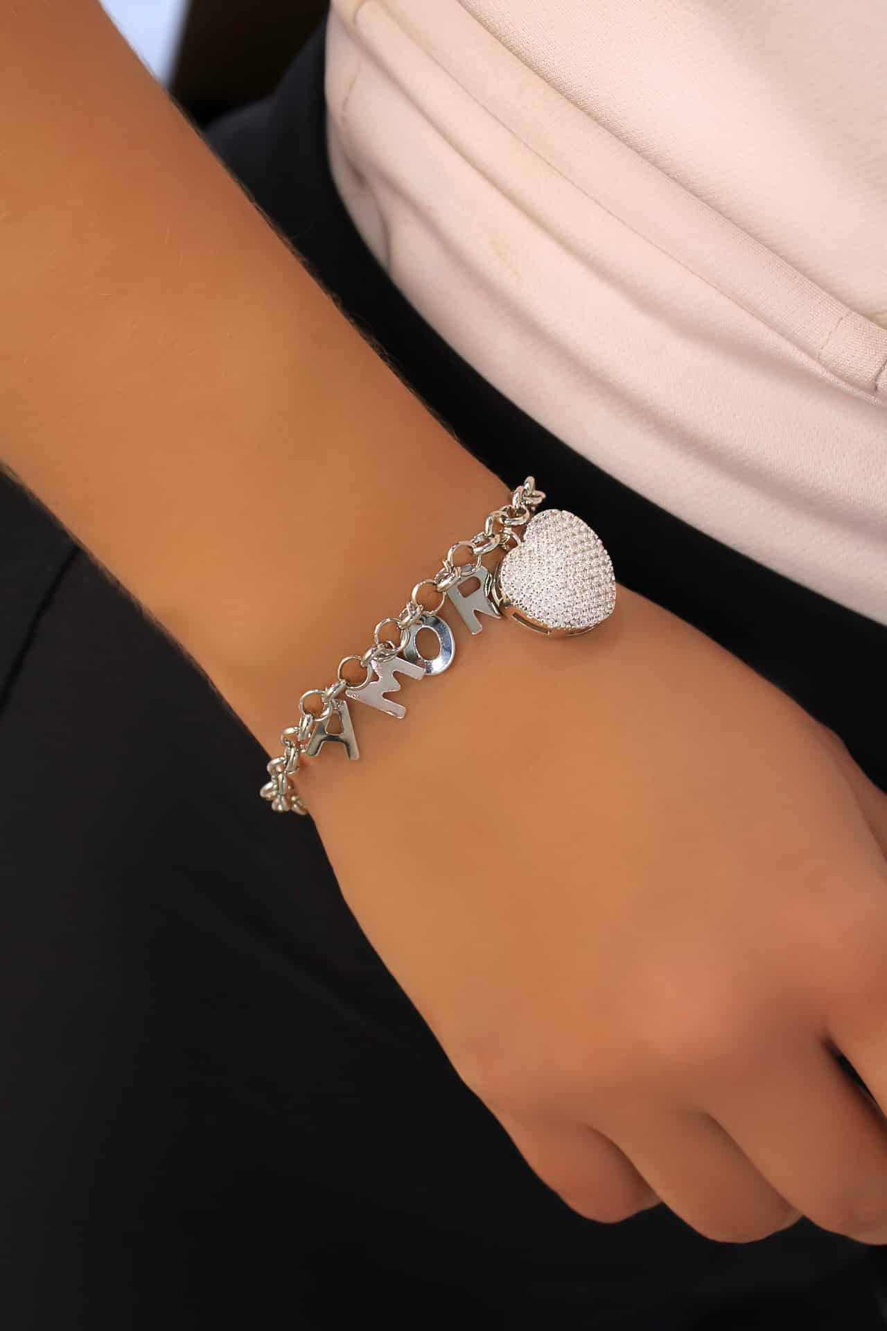 PULSEIRA ZIRCONIA CORACAO COM ESCRITO AMOR