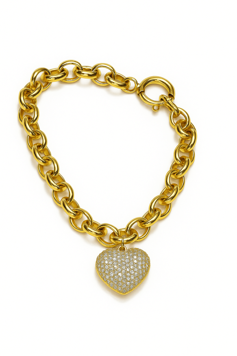 PULSEIRA ZIRCONIA ELO PORTUGUES GRANDE PINGENTE CORACAO CRAVEJADO