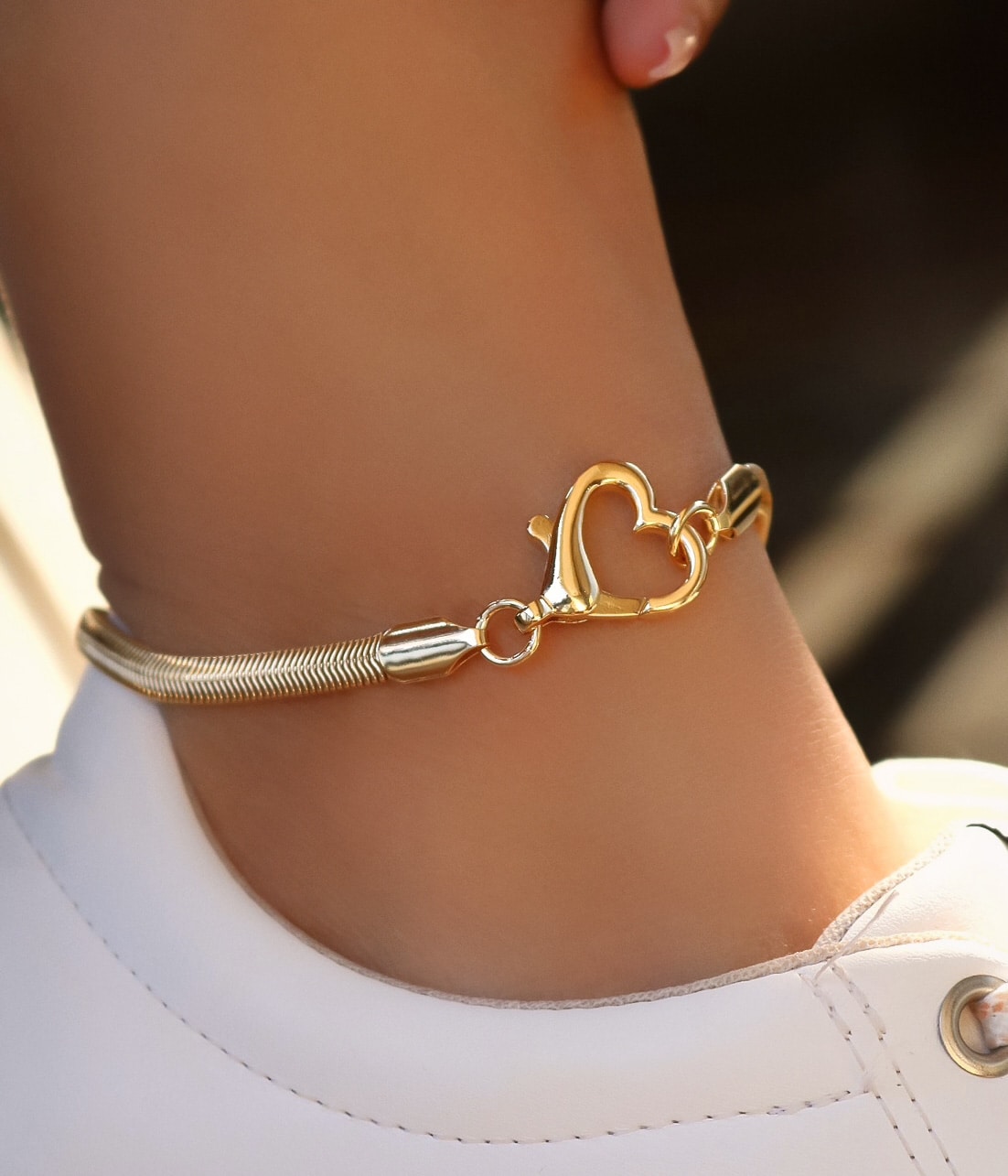 TORNOZELEIRA LISA RABO DE RATO COM FECHO DE CORACAO